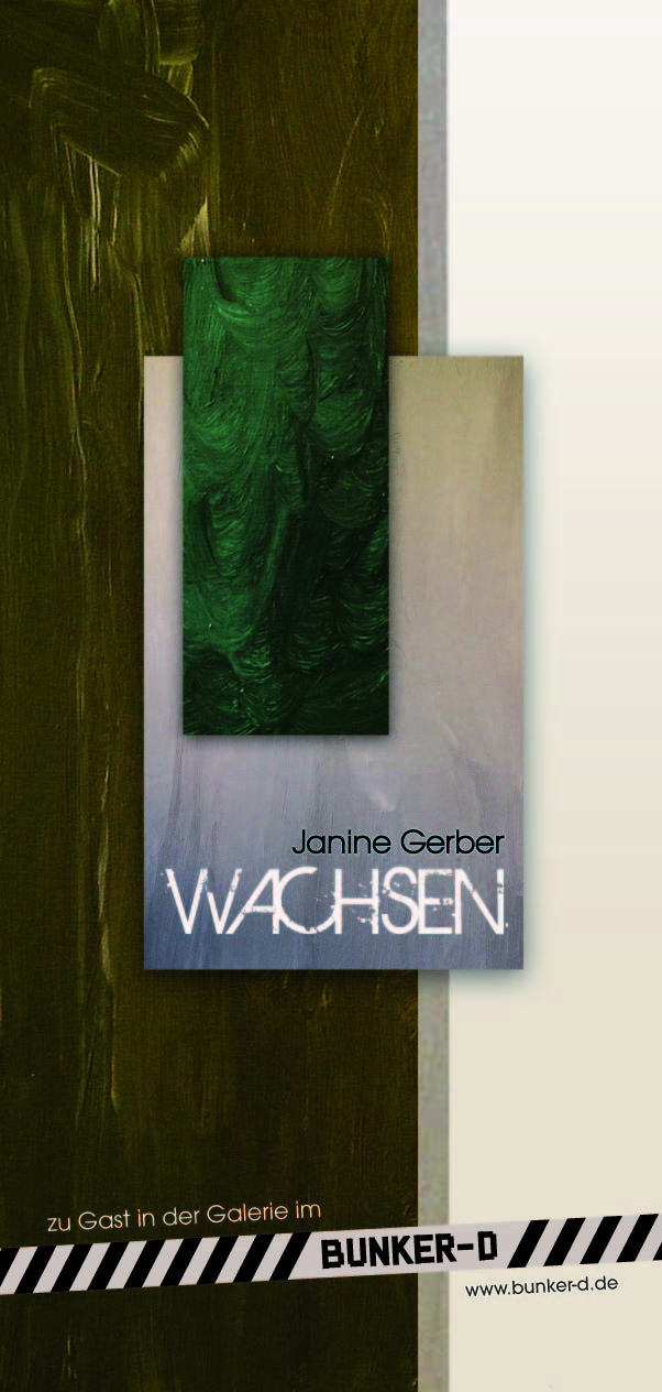 Im Bunker-D lief vom 11. März bis 14. April 2010 ihre Ausstellung „Wachsen“. Zwei riesige Papierbahnen hat Janine Gerber mit Rissen und Schnitten versehen. Die eine ist tiefschwarz, die andere weiß. Sie stehen für die reinsten Formen des Lichts und durch die Einschnitte wird das „Papier zur Skulptur“. Außerdem gibt die Künstlerin den Farben so Raum, unterschiedliche Schattierungen und Nuancen zu zeigen. „Der Übergang von einem warmen Ocker zu einem hellen Grau, weiter zur Spiegelung von etwas Grünem“, das ist für sie die sinnliche Kraft der Farbe.