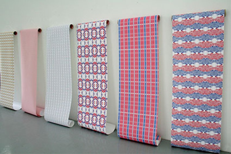 Auf 20 Tapetenentwurfsbahnen präsentiert Katja Flieger ihre Entwürfe zur Entstehung von Landschaften. Die Absolventin der Muthesius Kunsthochschule beschäftigt sich mit dem Künstlichen und dem Natürlichen, mit der Linie im grafischen Sinne. Aus Markierungen, Anweisungen, medizinischen Bauplänen und wissenschaftlichen Grafiken schafft sie ineinander fließende Landschaften in faszinierender Tapeten-Ornamentik. „Ich frage nach dem industriell Produzierbaren und beschäftige mich mit dem Vielfältigen und dem Einzigartigen. Entscheidet die Industrie oder der einzelne Mensch, was beigetragen wird?“
