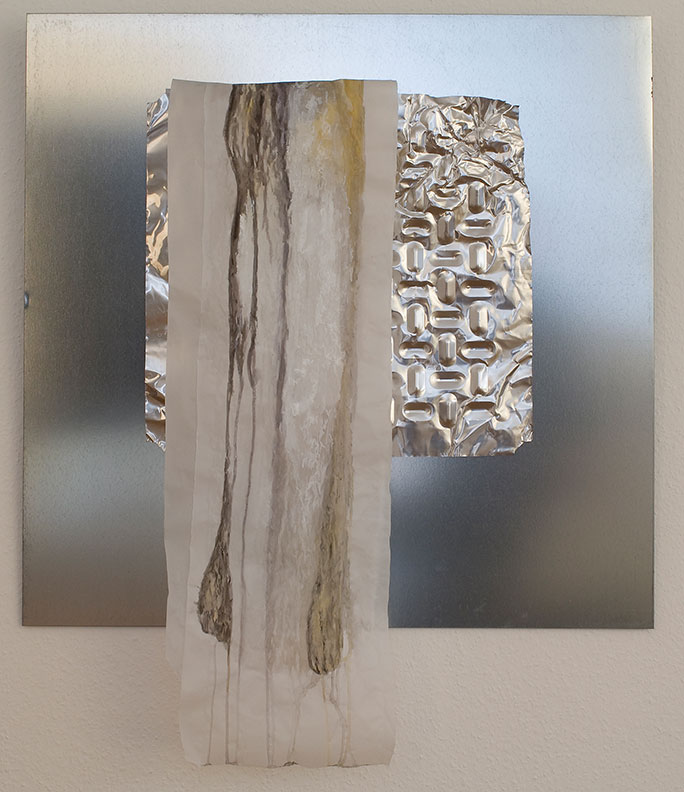 In den neuen Arbeiten ihres Werkzyklus umgarnen und verdrahten/to tie an to link experimentiert Brigitte Bailer und nimmt sich als Künstlerin zugunsten der Eigensprachlichkeit der eingebrachten Materialien hier und da zurück. „Genau wie die mir schon vertrauten Werkstoffe Metall, Stoff, Sand und Glas sind Garn und Draht ebenfalls Materialien aus unserem Alltag, die formbare Transformation ermöglichen.“