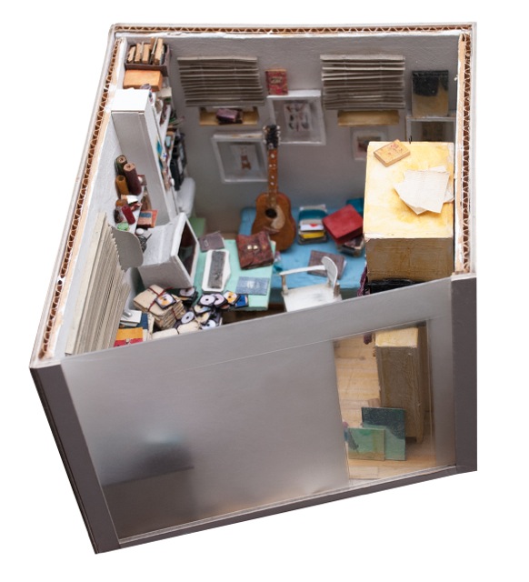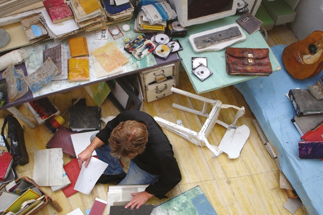 Verwirrt und fasziniert blieben die Betrachtenden der Werke Bernd Hamanns zurück, so beschreibt es der Kunsthistoriker Jens Martin Neumann. Und tatsächlich wirken die Arbeiten Hamanns zunächst unspektakulär. „Ad Acta“ zum Beispiel. Auf den ersten Blick sitzt da ein Mann auf dem Fußboden seines herrlich unaufgeräumten Arbeitszimmers. Doch irgendwie wirken die Gegenstände im Raum seltsam: Der auf dem Boden liegende Stuhl sieht merkwürdig aus, ebenso die Tastatur des Computers. Kein Wunder, sie bestehen nicht wie üblich aus Holz oder Kunststoff, sondern Hamann hat sie, wie auch Aktenordner, Tuschkasten und den Rest der Einrichtung, nachgebaut. Mit Landschaften verfährt er auf die gleiche Weise – er stellt sie in detailgetreuen Modellen nach, um sie zu fotografieren und anschließend die Abbildungen realer Personen einzufügen.