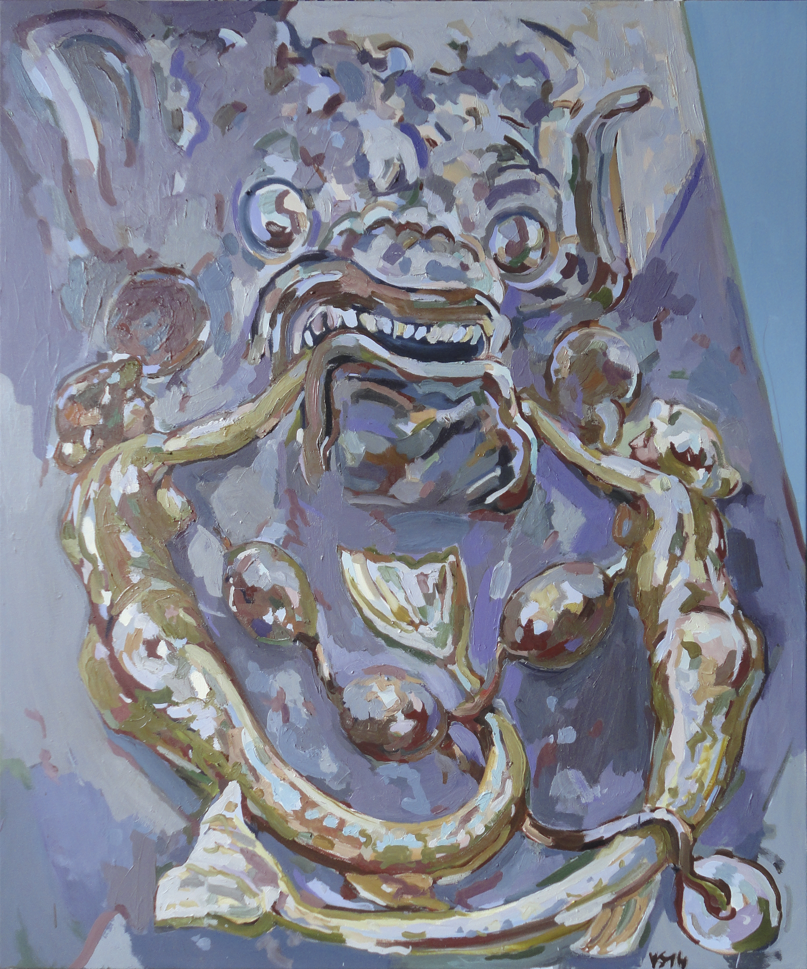 Sitnikov greift damit zugleich aber auch ein Grundprinzip der russischen Ästhetik auf: Jedes Werk entsteht durch ständig erweitertes Aufbauen, die einzelnen Teile werden immer wieder anders zusammengestellt und angeordnet, und durch diese Art von Suchbewegung nehmen sie schließlich eine endgültige Gesamtform an. Dieses Prinzip, nach dem Sitnikov vorgeht, zeigt sich bereits in den ersten großformatigen Ölbildern, die zeitgleich im Foyer der Fachhochschule („Terra incognita“ und „Alma Mater“ von 1996) oder in anderen Räumen des Bunkers („Hände hoch“ von 2010) zu sehen sind. Für die aktuelle Ausstellung im Bunker-D sind die Bilder, quasi wie in einem Kartenspiel, neu gemischt. So ist „20 Jahre Arbeit – geht so“ eine kleine Retrospektive, aber zugleich ist etwas Neues entstanden: Sichtweise und Aussage haben sich verändert. Eingearbeitet hat Sitnikov dabei auch die Bilder der Serie „Kieler Köpfe“, die er gerade fertig gestellt hat.