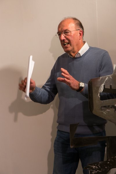 Das Modell, das der Künstler mitbrachte trägt den Namen „Der Wald des Friedens“. In der Realität soll das Werk 8x6 Meter messen. Unterschiedliche Bahnweichen von 2,20 Meter bis zu 3 Meter symbolisieren den Wald, in dem sich drei Mannshohe Skulpturen bewegen. Dieser Ort solle kein Erinnerungsort werden, betont der Künstler, vielmehr soll es ein Ort für individuelle und gesellschaftliche Reflektion sein. Umgesetzt soll dieser im urbanen Raum wirken und zu Zeiten der globalen Unruhen ein Ort der Auseinandersetzung sein.