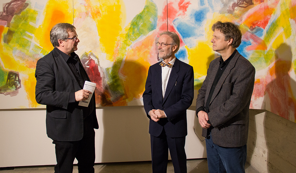 Klaus-Michael Heinze, Erhard Rimek und Dr. Jens Rönnau bei der Vernissage von "Konträr"