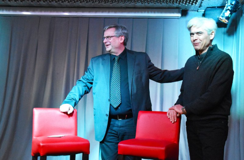 Kanzler Klaus-Michael Heinze und Künstler Vladimir Sitnikov bei der Eröffnungsrede