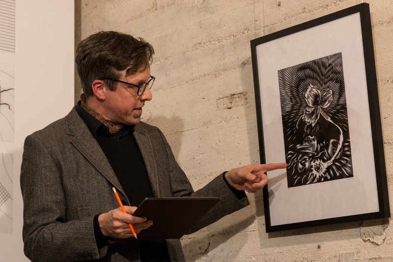 Schriftsteller und Künstler Arne Rautenberg während seiner Rede zu Johanna Ludwigs Werken