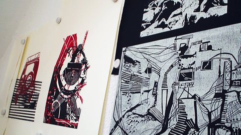 Karin Hilbers arbeitet vorrangig in der Technik des Holz- und Linolschnittdrucks. Im Bunker-D zeigt die Künstlerin 250 Holz- und Linolschnitte im Rahmen der Ausstellung "wer weiß was? wie oft?".