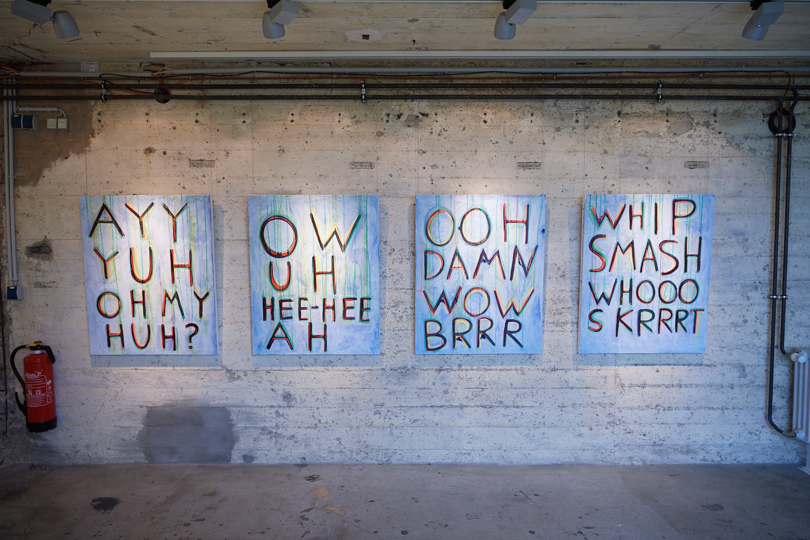 Sein jüngstes Werk sind Textbilder, auf die er mit leuchtender Tinte Wortungetüme wie „Ooh Damn Wow Brr“ geschrieben hat. Diese sogenannten „Adlibs“ unterstützen als Füllmaterial „den Flow“ von Rap-Songs. Damit richtet er durch die spezielle Ästhetik und Leuchtkraft, die Aufmerksamkeit der Besucher auf Sprachmomente, die sonst weniger beachtet werden.