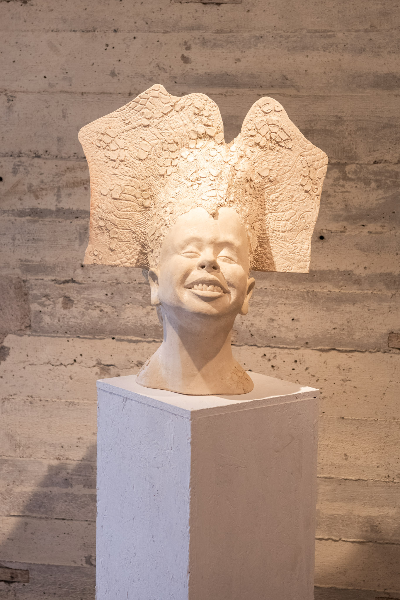 Dies gilt desgleichen für die wie Flügel ausgebreiteten Haare der ausdrucksstarken Lykka aus weißem Ton, deren Porträthaftigkeit überzeugt.