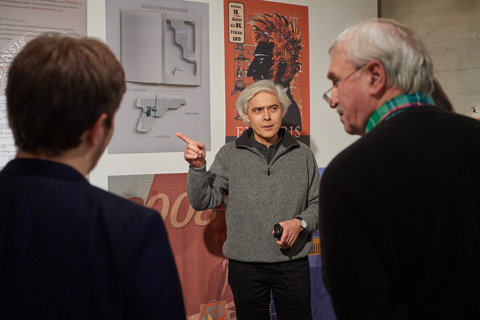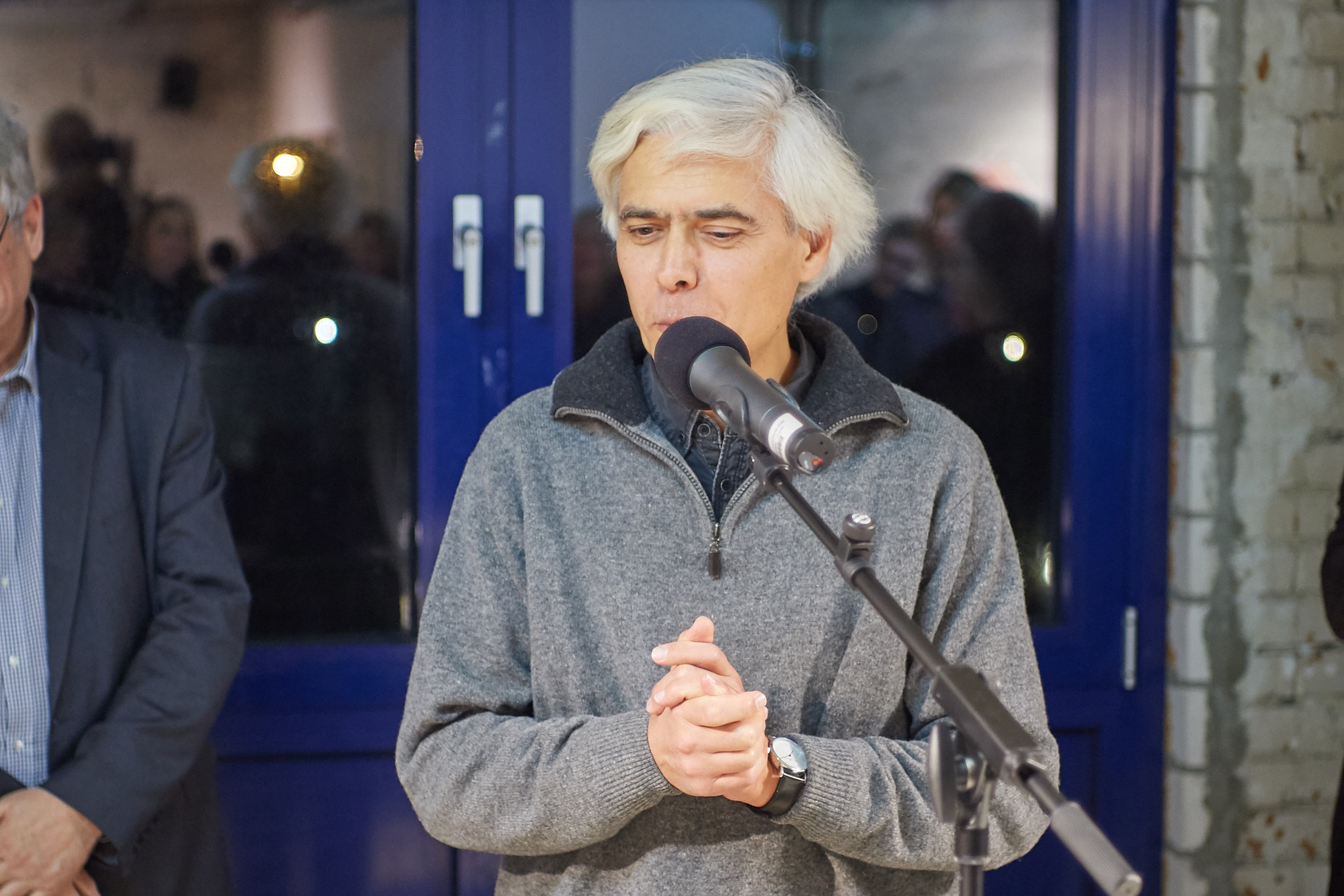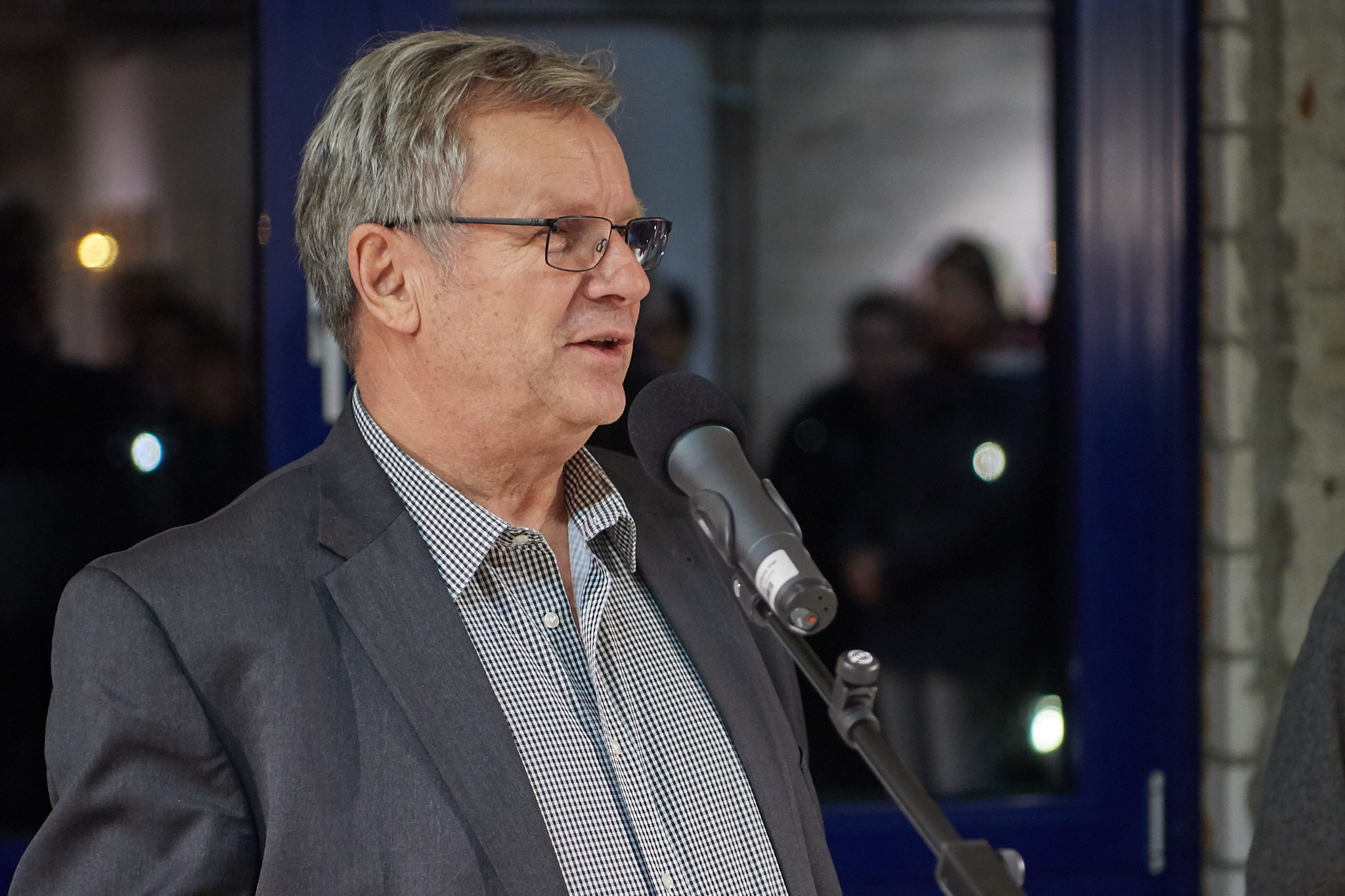 Klaus-Michael Heinze begrüßte die Gäste zur Ausstellung "EX LIBRIS" und erzählte von den zahlreichen Projekten, die er bereits, gemeinsam mit Vladimir Sitnikov, umsetzen konnte.