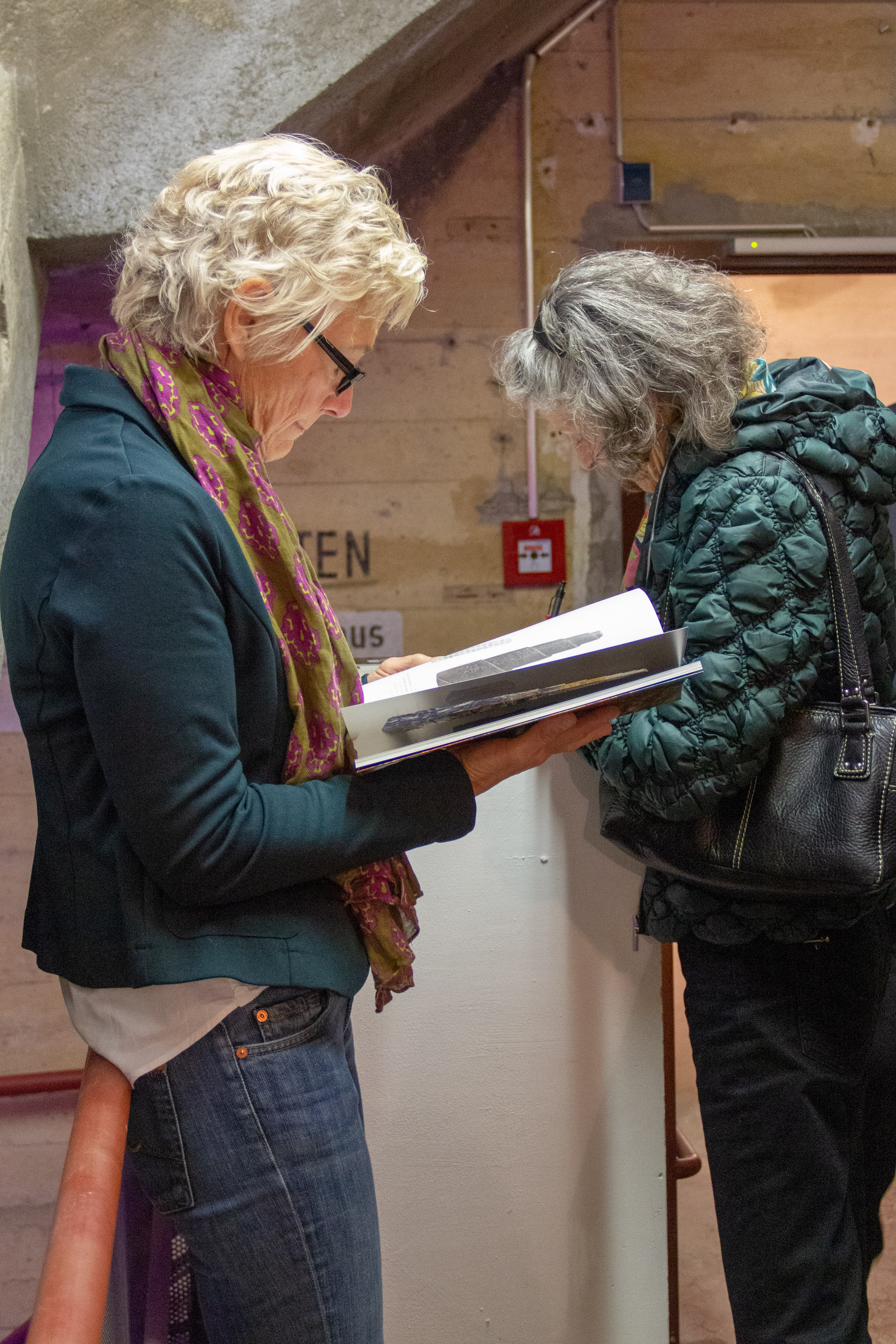 Immer wieder erzählte sie auch persönliche Geschichten. Als Tochter des Künstlers hat sie schon von Kindheit an die künstlerische Tätigkeit von Jo Kley mitverfolgen können.