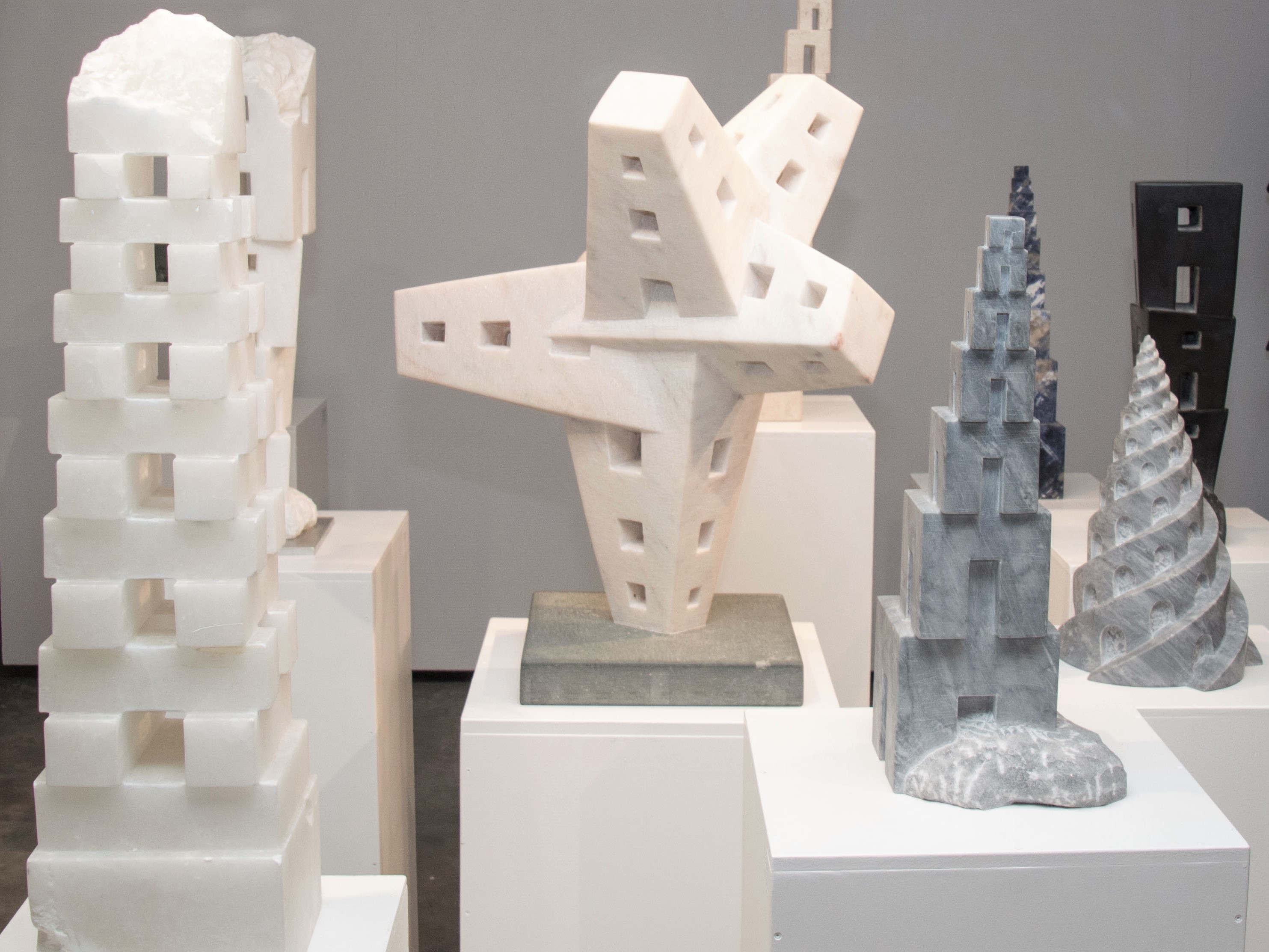In einem der Ausstellungsräume präsentierte Jo Kley das Thema „KLEYCITY“ mit seinen turmartigen Skulpturen. Türme wie diese, nur in einem anderen Format, sind über den ganzen Globus verteilt. Der Künstler war in den letzten 20 Jahren zu über 60 internationalen Bildhauersymposien in 25 Ländern weltweit eingeladen. "Wenn ich zum ersten Mal in einem Land arbeite, entsteht dort immer eine turmartige Skulptur, passend zum jeweiligen Ort", sagt Jo Kley. Im kleinen zentral gelegenen Raum zeigte der Bildhauer in einer Lichtbildershow eben diese Werke.