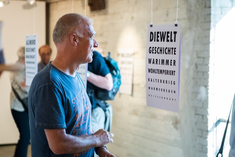 Nach der Eröffnung konnten die Gäste bei den 48 Texttafeln schmunzeln, nachdenken und grübeln.