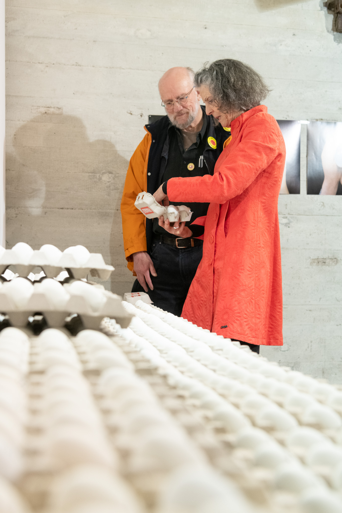 Als Symbolik für den Frieden nutzt die pensionierte Zahnärztin Eier, denn sie stehen für das neue Leben, für Hoffnung, für die Zukunft. Doch sie sind wie der Friedenszustand fragil und müssen daher mit Umsicht und Achtsamkeit behandelt werden.