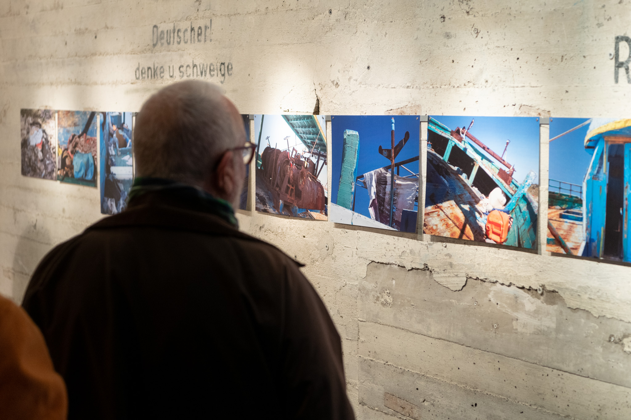 In einem der Galerieräume zeigt die Künstlerin Serien mit Aufnahmen von zerstörten Schiffwracks auf einem sizilianischen Bootsfriedhof. Die Künstlerin musste beim Fotografieren an die Situation der Flüchtlinge denken: „Die unbekannten Schicksale der Boote und besonders die Schicksale der Flüchtlinge auf ihrer Fahrt ins Ungewisse ließen bei mir viele Fragen entstehen“, so Liebe.