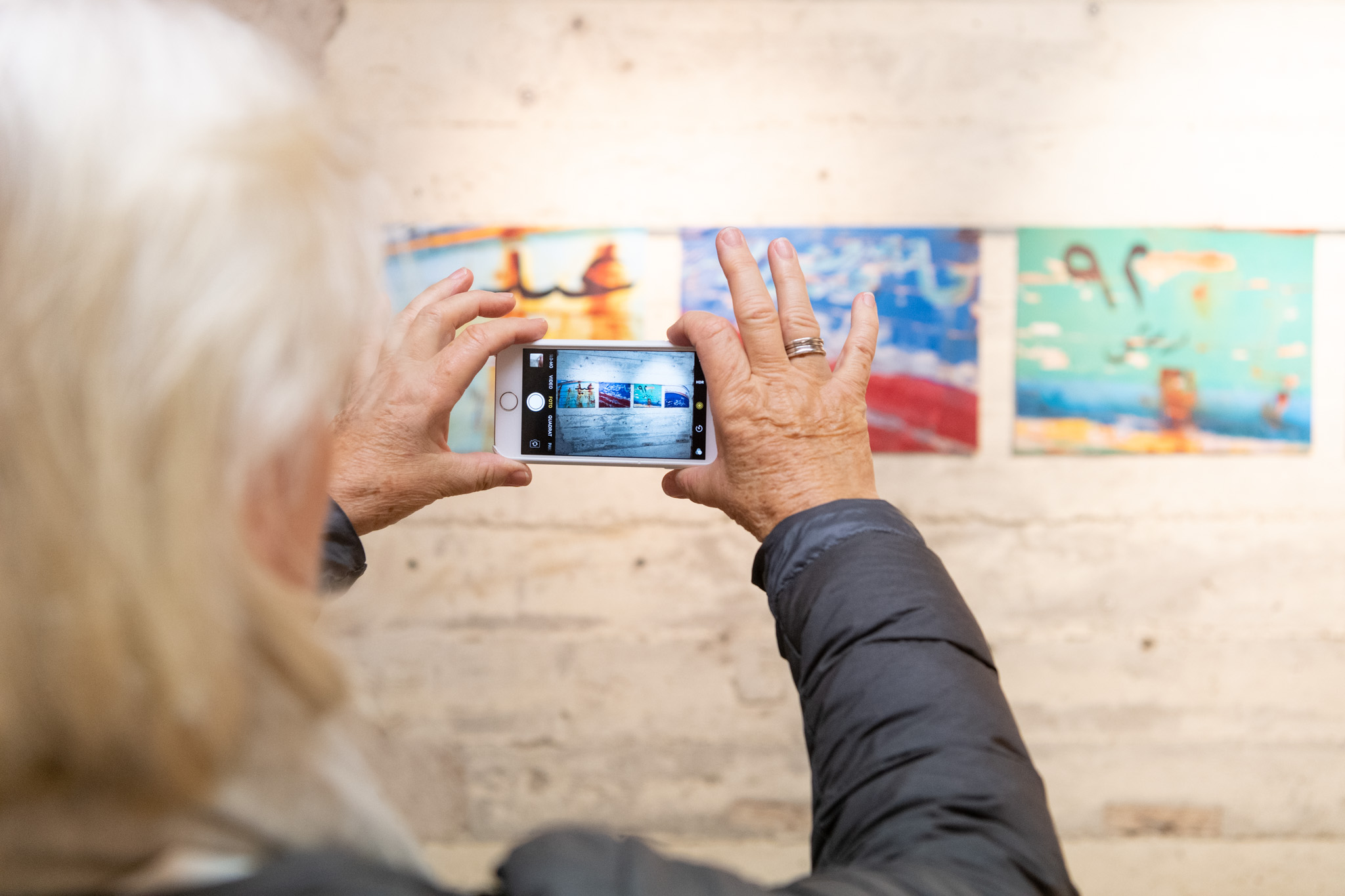 In digitalen Collagen der Serie "the unknown" sind Schattengestalten auf den Booten zu sehen. Über sie hat sich wiederum ein Schleier von arabischen Schriftzeichen gelegt. Es steht für das Unbekannte, das Fremde, was uns verunsichern und beunruhigen kann.