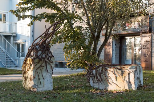 Die aus China stammende junge Künstlerin Cui Yi fertigte die zweiteilige Arbeit 2017 für die Sommerausstellung des Skulpturenparks Bissee. Die Arbeit zeigt filigrane rostbraune Eisengeflechte, die zwei aus einem Abbruch stammende Betonquader umspannen. Wurzel gleich, fast zärtlich, umschmiegt das rostige Metall den rauen Betonblock. Trotz ihres romantisch wirkenden Titels erzählt die Skulptur von der rasanten kaltherzigen Entwicklung Chinas, so die Künstlerin.