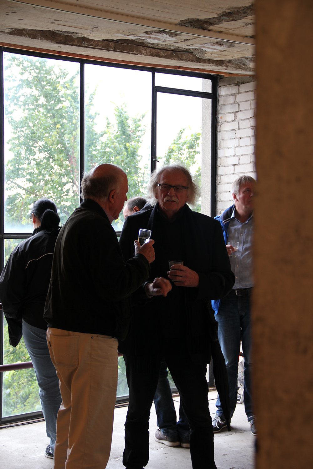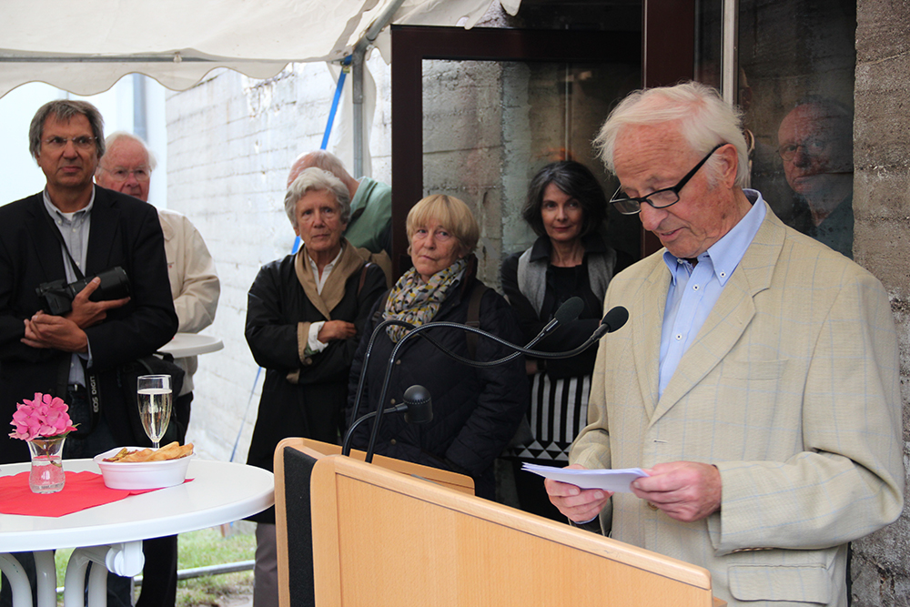 In seiner Eröffnungsansprache berichtete Dieter Pape vom Plöner Kunstverein über die 25-jährige Geschichte der "KUBUS BALANCE". Seit 1990 schmückte das Werk die Schlossterrasse in Plön. 2003 wurde sie abgebaut und war seitdem 12 Jahre eingelagert. Pape stellte den Kontakt zwischen Schrader und Heinze her und ihm ist zu danken, dass das Werk nie in Vergessenheit geriet.