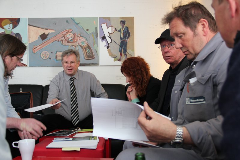Bei einem weiteren Treffen des Künstlers und des FH-Kanzlers im April 2015, an dem auch Hannah Schrader, der Statiker Conrad Hansen, der Spediteur Carsten Mohr und Roland Hirche von der Werft teilnahmen, wurden die letzten technischen Details der Konstruktion und der Montage besprochen. Bei diesem Treffen wurde das Dach des Bunker-D genauestens unter die Lupe genommen und der genaue Standort der "KUBUS BALANCE" festgelegt.