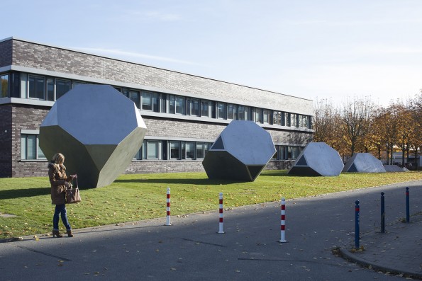 39 Jahre lang säumte die sechsteilige Edelstahl-Plastik "STRASSENBOJE" die Hauptfußgängerachse im Universitätsklinikum an der Feldstraße. Wegen umfangreicher Umbaumaßnahmen, die einen Forschungsneubau am Standort der Installation vorsehen, musste die Plastik ihren alten Standort verlassen.