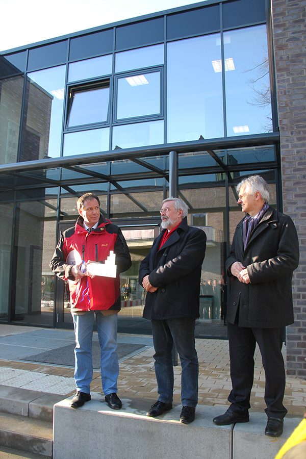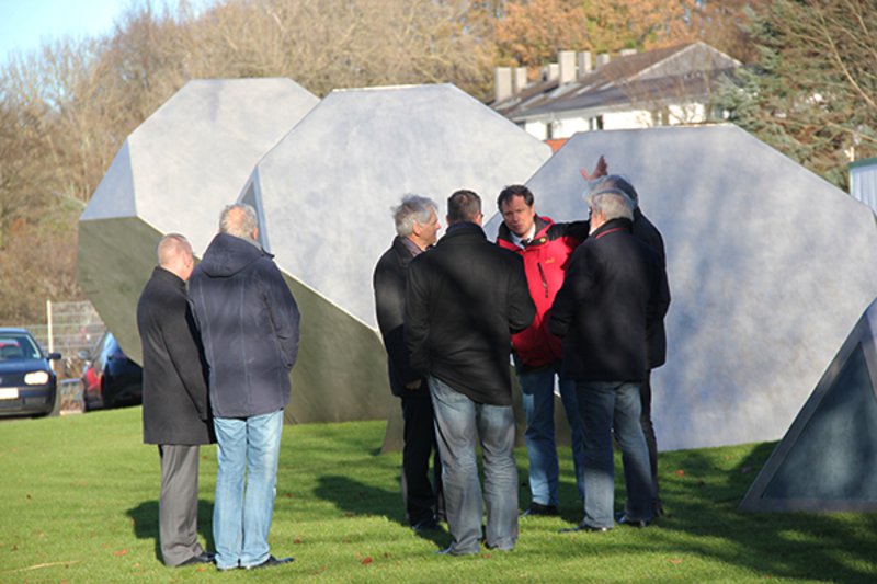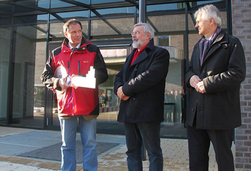 Nachdem die sechs großen Einzelteile der Installation von K-L Schmaltz Anfang Oktober auf dem Campus am Ostufer montiert und alle landschaftsgestalterischen Arbeiten rund um die Installation abgeschlossen wurden, wurde das Kunstwerk am 26.11.2015 offiziell eingeweiht.