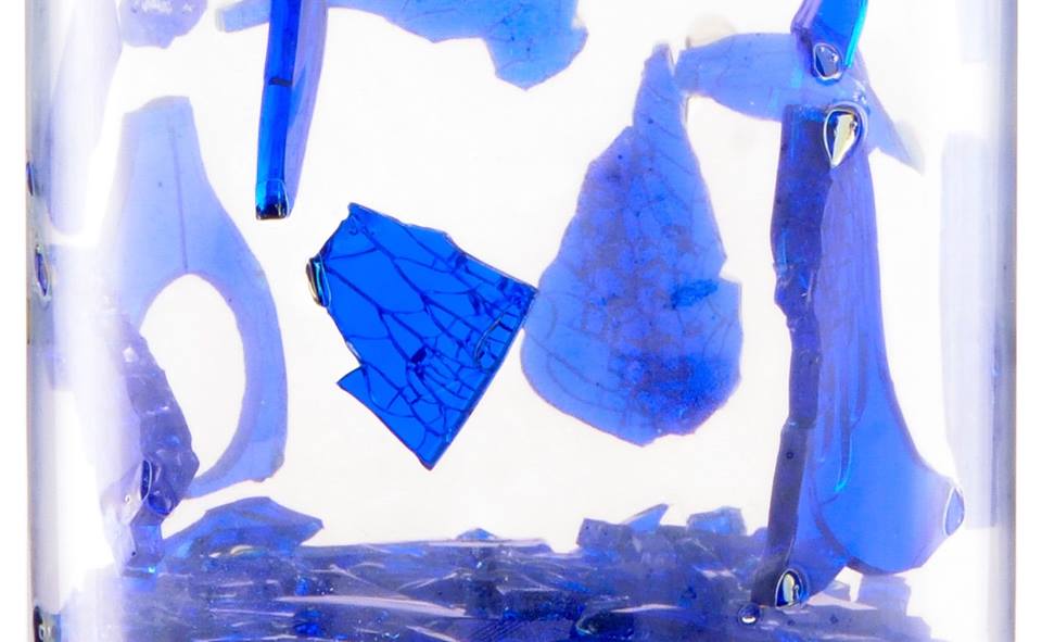 und das ist zerbrechlich. Das Klarglas umhüllt das blaue Glas, schon klar, doch was siehst Du under the Dome? Sind es geheime Schriftzeichen? Eine mystische Pflanze aus einer anderen Welt? Oder das Universum in einer Nussschale, nur eben aus Glas?