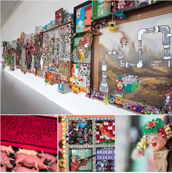 und das glotzt Dich aus mindestens 75 Augen an. Wäre es nicht fest montiert, würde es mit seinen vielen kleinen Beinen wegkrabbeln und eine Spur aus Glitzer und Plastikschweinchen hinterlassen. Es ist bissig, vorne rosa-bunt, hintenrum braun – nicht, was Du jetzt denkst. Ach ja, und Vorsicht ist geboten, denn es motzt und hat 'ne Schrotflinte!