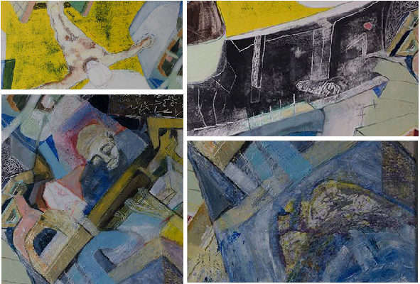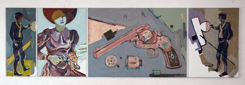 Menschen. Waffen. Schussbereit. Eine Bedrohung, festgehalten in Öl. Gefahr. Überall. Immer. Zeuge einer vergangenen Ausstellung, Vorbote einer weiteren: Ab Donnerstag gibt es noch mehr Vladimir Sitnikov im Bunker zu sehen!
