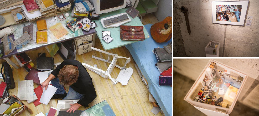 Ich sehe was im Bunker, was Du nicht siehst - und das ist beides, vielerlei: groß und klein, Modell und Fotografie, Papier und Wohnung. Klein gebastelt, nur ein Fünfzehntel des Echten. Einen Blick von oben hinein kannst Du erhaschen. Und auch in groß, sogar bevölkert, kannst Du es betrachten - aber ist es denn wirklich groß? Ist es klein? Ist es Täuschung? Finde es selbst heraus!