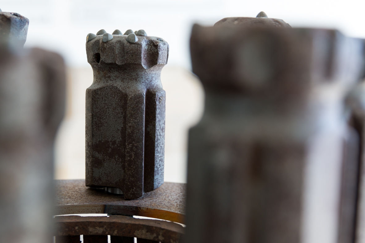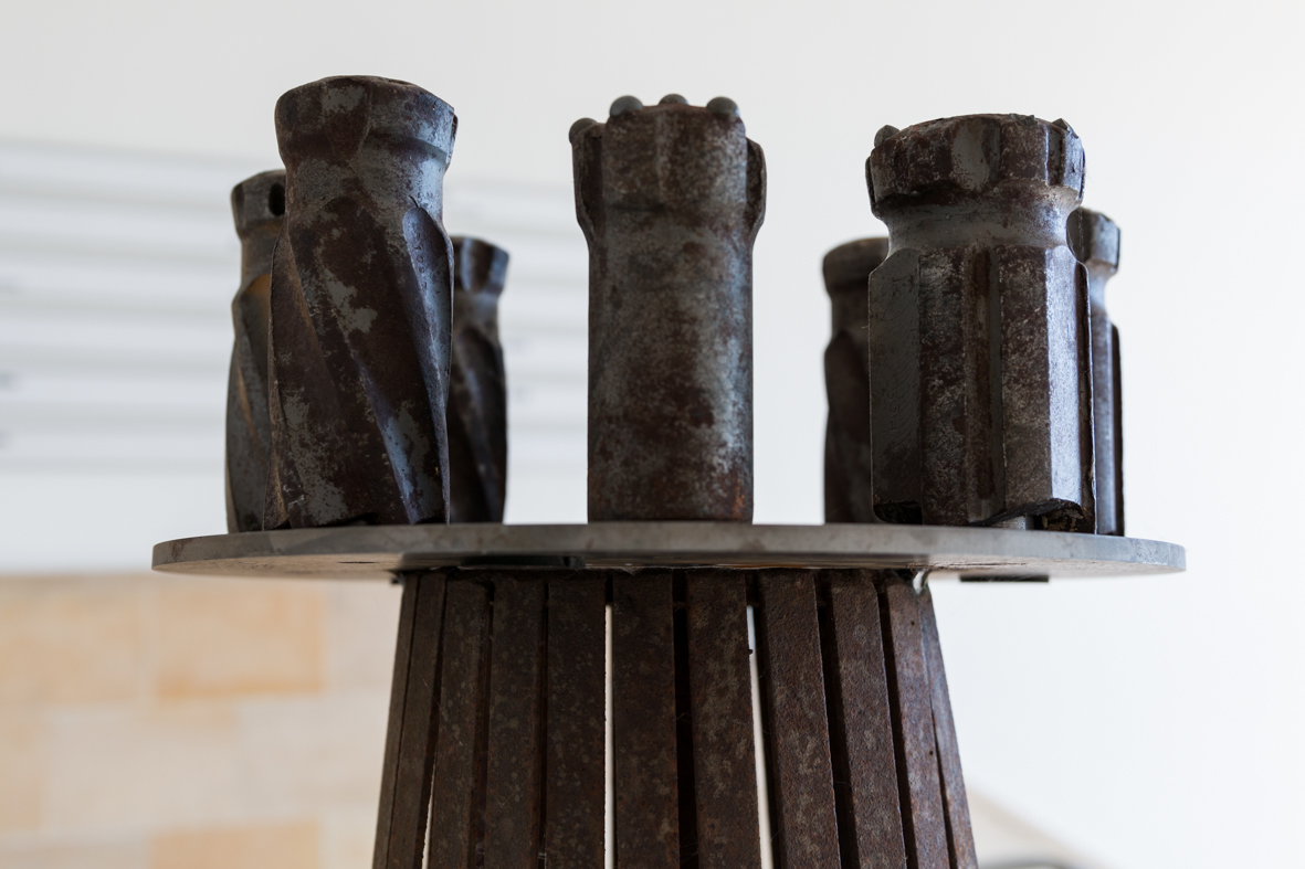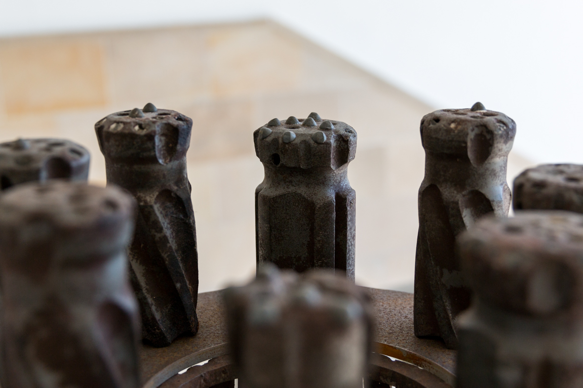 Die acht Bohrkronen thronen kreisförmig angeordnet auf der hohen Unterbaukonstruktion und wirken nahezu majestätisch, wie die Krone eines Königs. Jede einzelne Zacke, wenn man so will, ist eine der Bohrkronen, jede ganz unterschiedlich, keine gleicht der anderen.