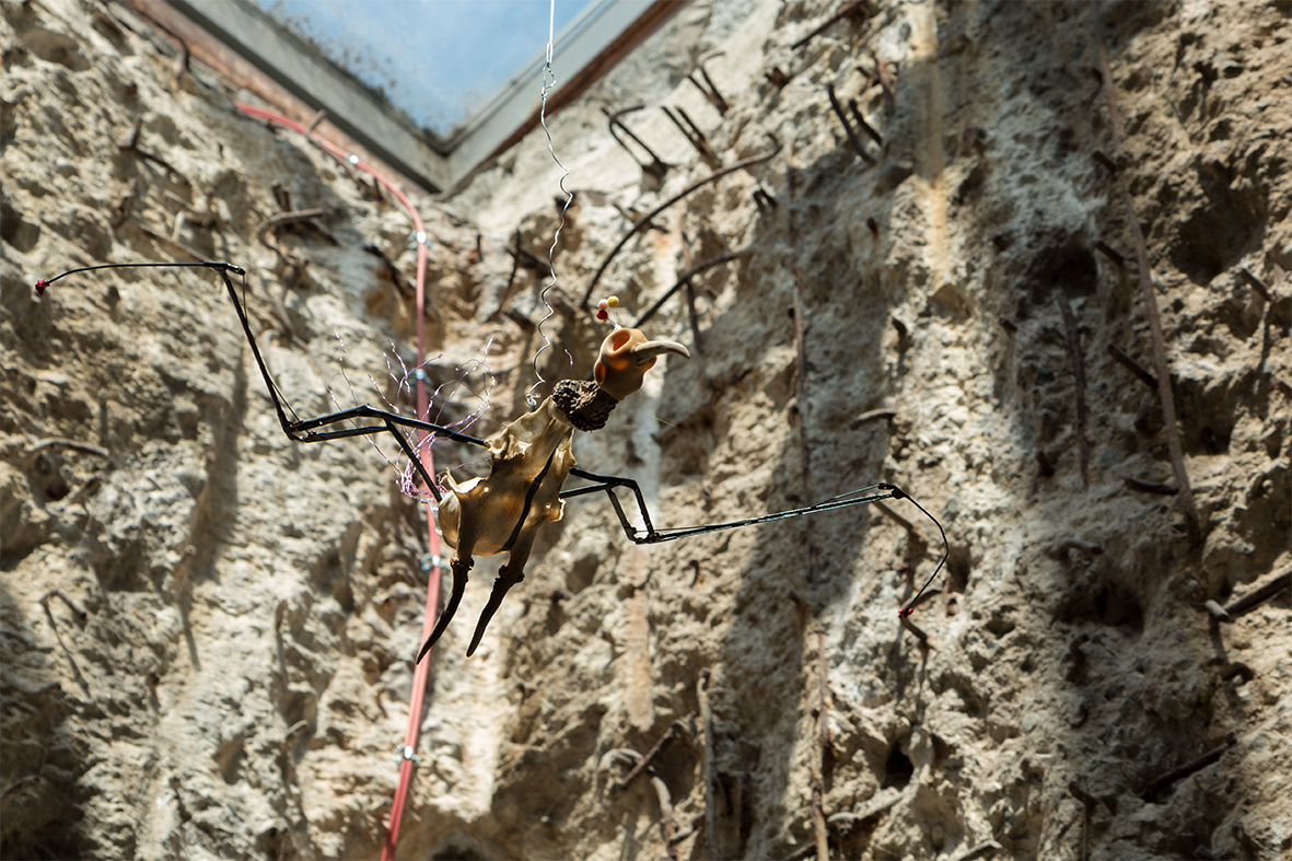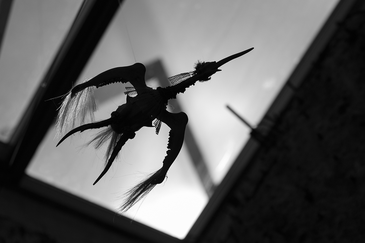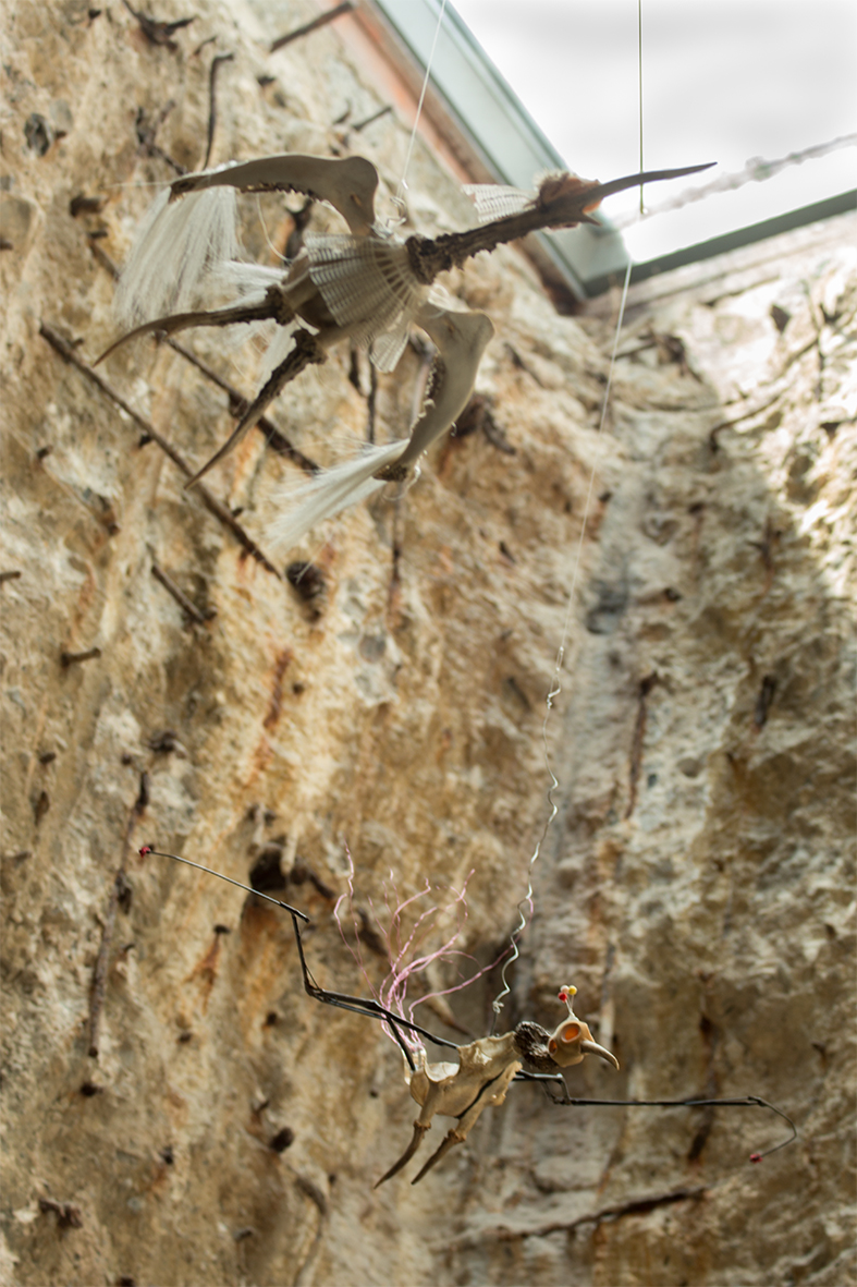 Die Plastiken „Vogel 1“ und „Vogel 2“ von Timo Schulz stammen aus der gemeinsamen Ausstellung „Betonpraline. Unruhe im Möglichkeitsraum“ mit Katharina Kierzek und Dominik Bednarz. Bei den Vogelplastiken handelt es sich um eher untypische Arbeiten für Timo Schulz, der normalerweise als Grafiker und Illustrator arbeitet. Die beiden Vögel bestehen aus unterschiedlichsten Materialien.