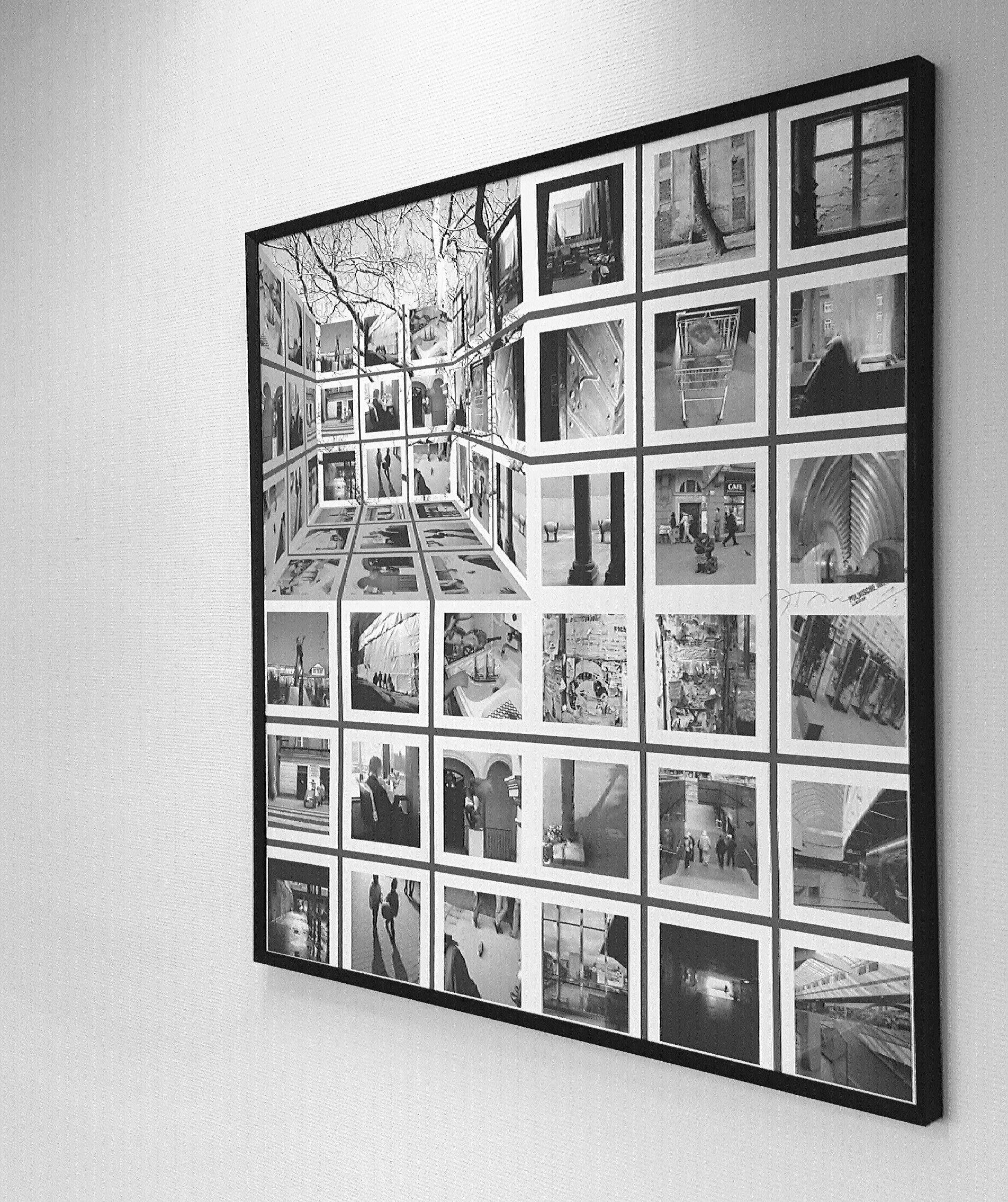 Im ersten Drittel des quadratischen Werks tauchen die selben Fotografien wieder auf. Durch die dreidimensionale Darstellung entsteht ein Raum, der den Betrachter in die Geschehnisse hineinzieht. Zusätzlich bekommt dieser Teil des Werks durch die Sepiafärbung eine zeitliche Komponente und erweckt die fotografierten Momente zum Leben.