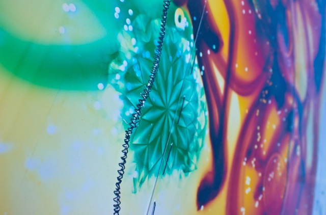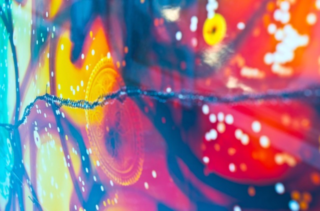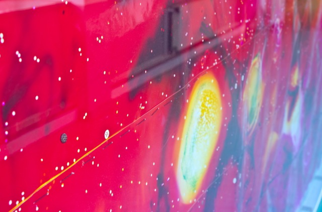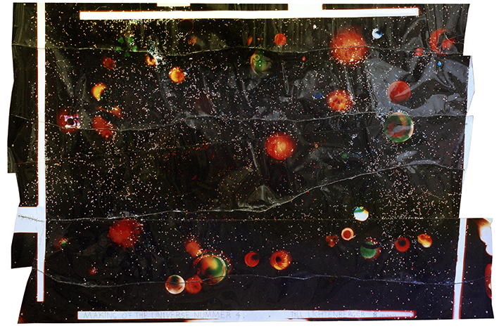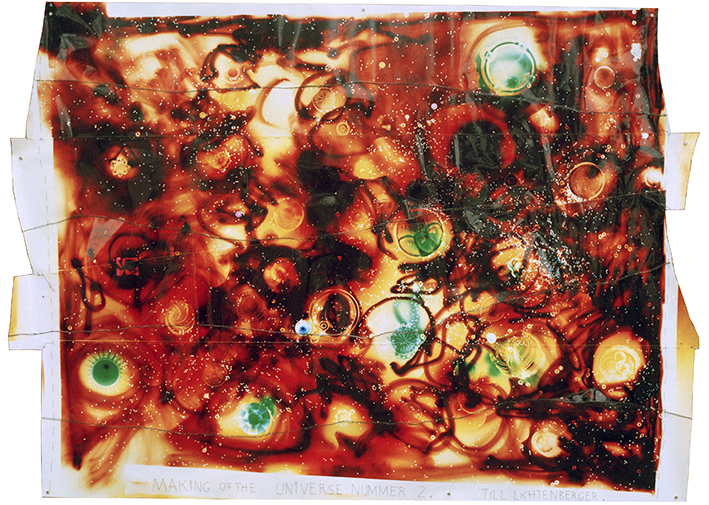 Der Fotokünstler Till Lichtenberger schuf vier analoge Farbfotogramme, die dauerhaft auf dem Campus der HAW ausgestellt sind. Jedes der Foto-Universen war mit seinen 200 x 280 cm zu groß für die Dunkelkammer und musste daher zerrissen und nach dem Belichten wieder zusammengenäht werden.