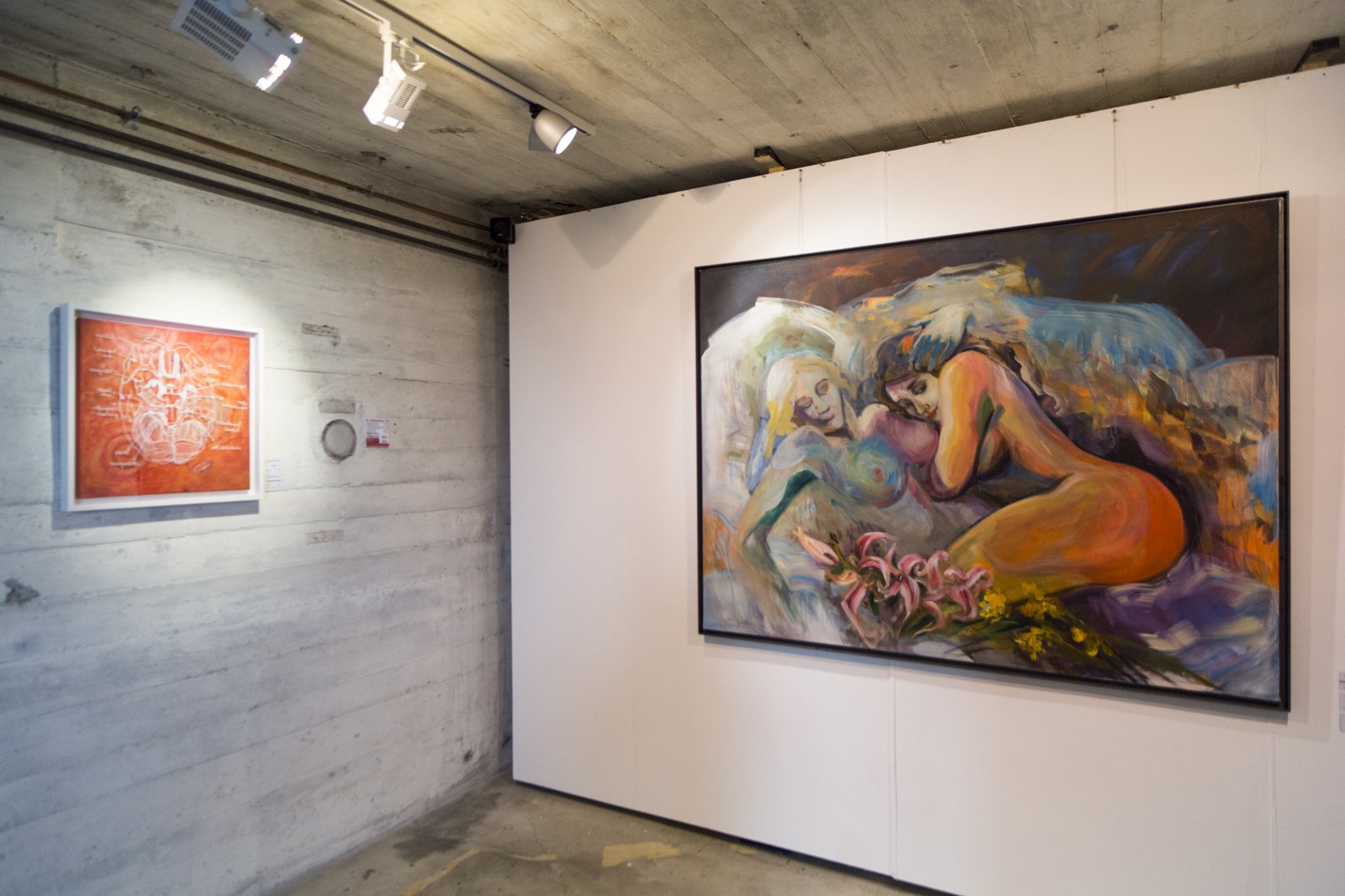 "Cardiac" stammt aus Anna Lena Straubes Werkzyklus "Flora", in welcher nackte und expressiv farbige Frauenkörper vor abstrakten Hintergründen die wiederkehrenden Motive sind. Bereits während ihrer zweiten Ausstellung im Bunker-D brachte die Künstlerin dieses Werk mit – seit 2015 gehört es nun fest zur CampusKunst-Sammlung.