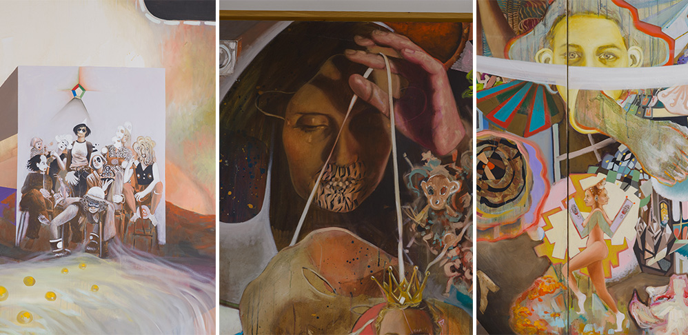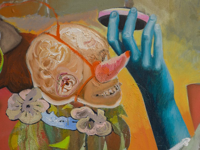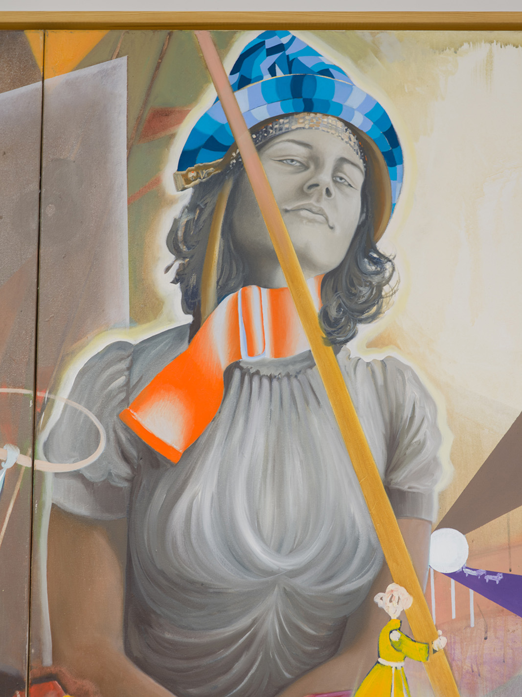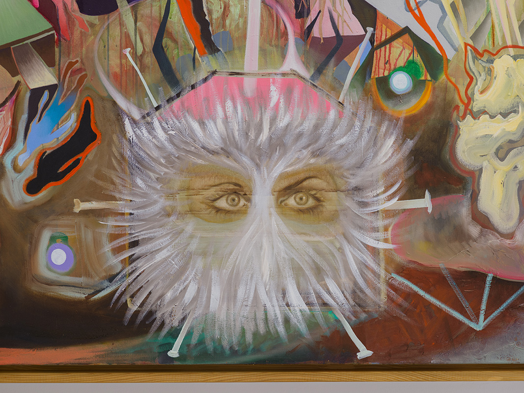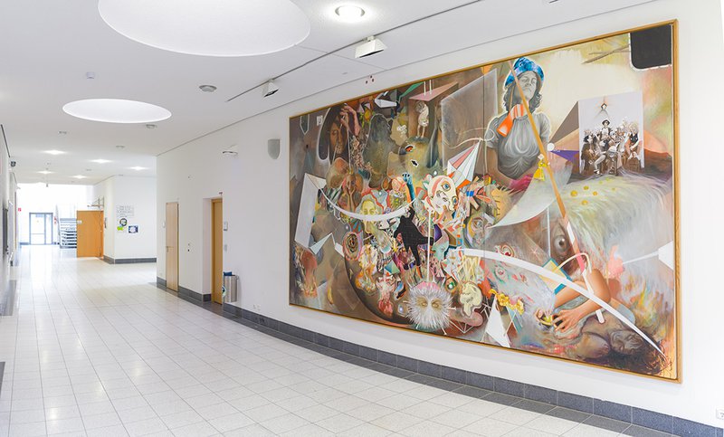 "click-barock 2.0" befindet sich seit 2015 in der CampusKunst-Sammlung und hat seinen neuen festen Platz im Großen Hörsaalgebäude an der HAW gefunden. Es umfasst eine Größe von 4.80 x 2.80 Metern und ist mit einer Mischung aus Acryl- und Ölfarbe auf Leinwand gemalt.