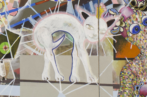 Anna Lena Straube zeigt mit „Drei weiße Katzen" ihre große künstlerische Bandbreite, indem sie realistische mit völlig abstrakten und surrealen Bildelementen mischt und kontrastiert. Obwohl der Titel es anders vermuten lässt, gibt es in dem Gemälde keine dritte weiße Katze zu entdecken – oder hat sie bisher nur noch niemand finden können?