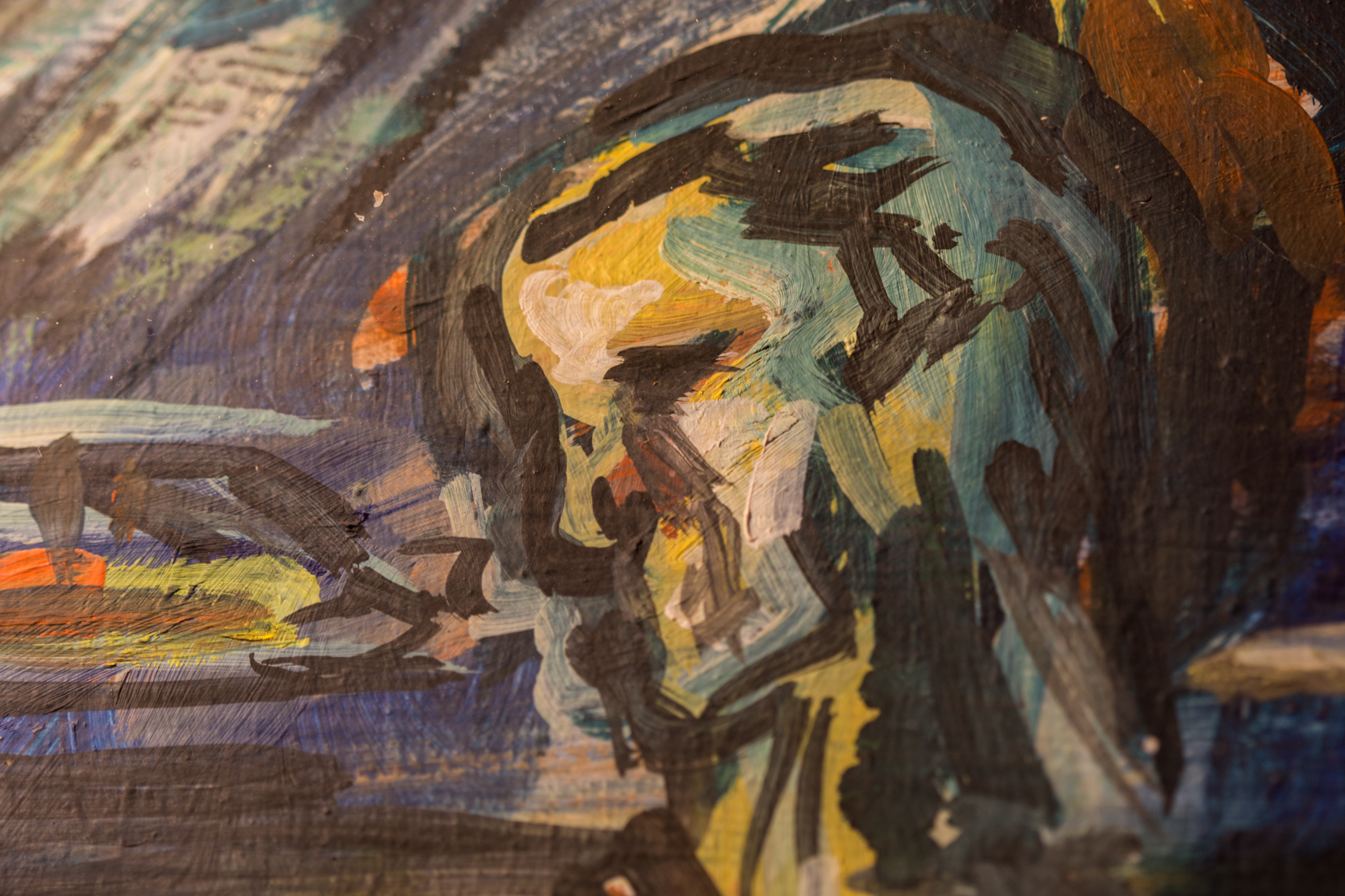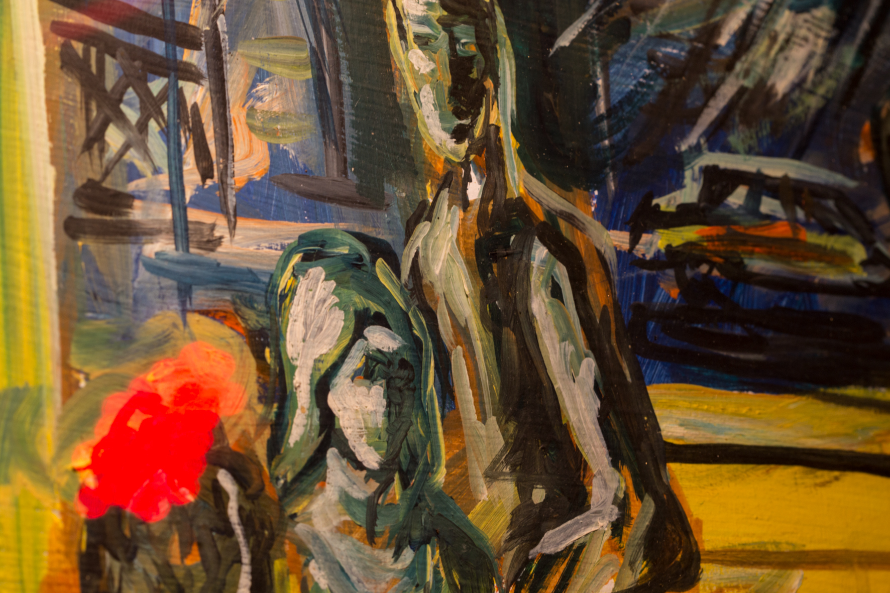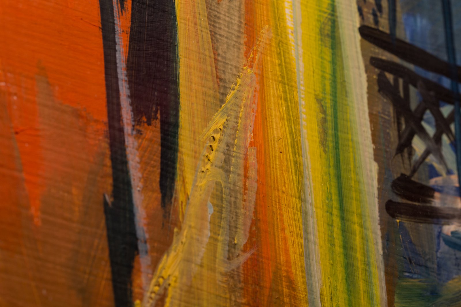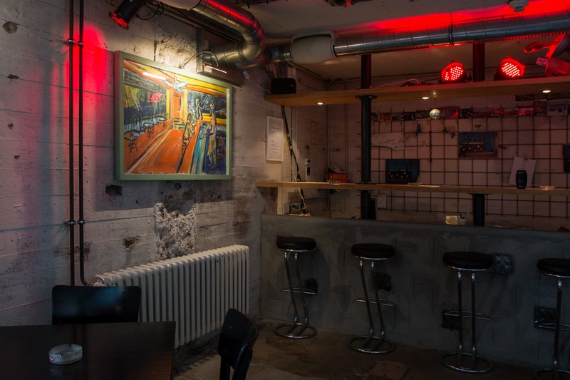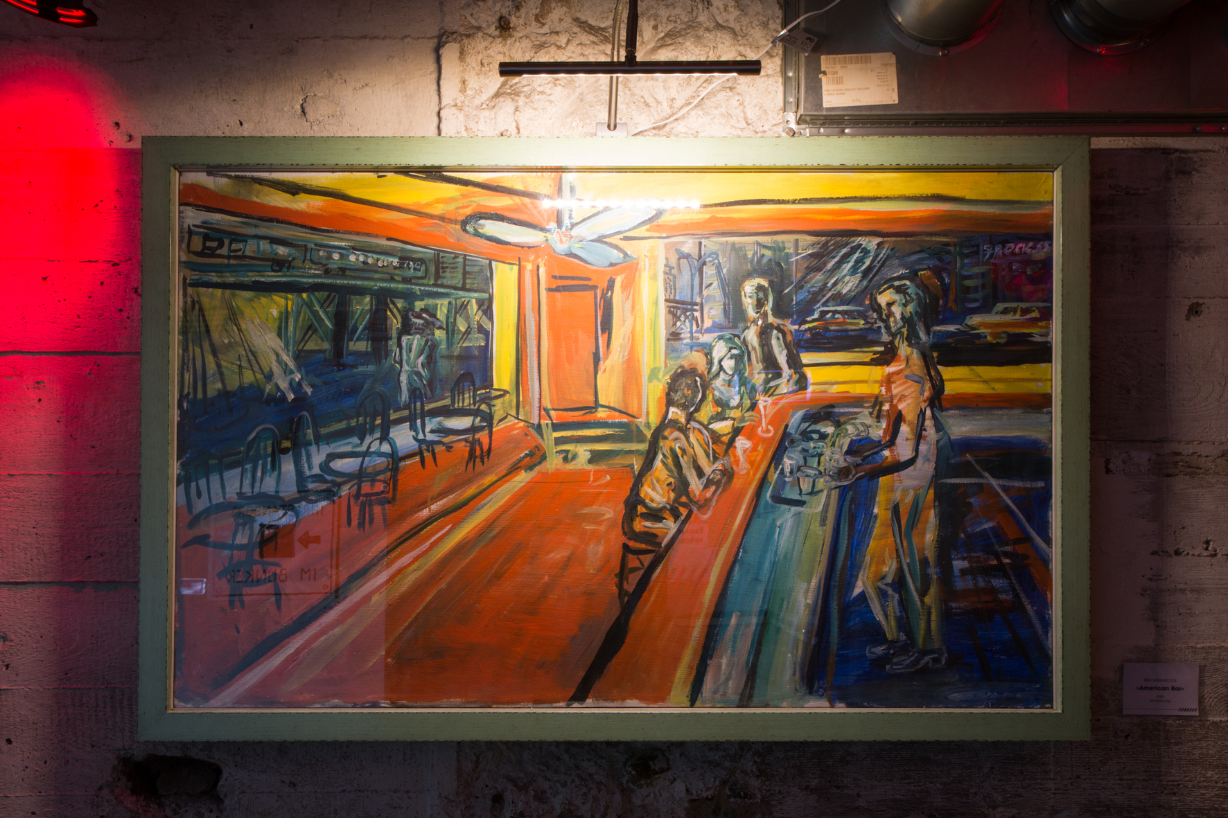 Dass Ben Siebenrock nicht nur Bildhauerei kann, zeigt er mit dem Kunstwerk "American Bar", welches passend zum Titel und Aussehen in der Bar des Bunker-D aufgehängt wurde. Diese Malerei mit Acryl auf Leinwand zeigt mit seinen kräftigen Farben eine Szene, die aufmerksame Kunstliebhaber wieder erkennen könnten, denn der Künstler "zitiert" hier das berühmte Werk "Boulevard of Broken Dreams":