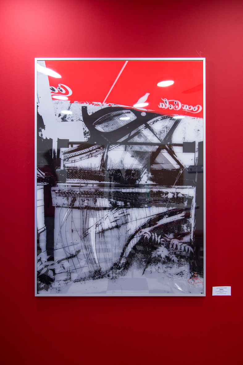 "Coca" stammt aus dem Zyklus "Archäologie eines Grand Piano". Seit November 2017 hängt es im Diner des großen Hörsaalgebäudes der HAW Kiel. Die grafisch bearbeitete Fotografie zeigt den Schriftzug einer berühmten Getränkemarke, darunter liegend wie weggeworfen ein Piano. Der Künstler macht uns auf den allgegenwärtigen Konsum und Überfluss aufmerksam, der nahezu über Allem zu stehen scheint, so dass selbst das Piano, Kunst und Kultur, ihm unterliegt. Passend zur Thematik hängt dieses Werk gegenüber der vervielfältigten Fotografie eines Automaten von Jan Petersen mit dem Titel "Uns geht´s gut".