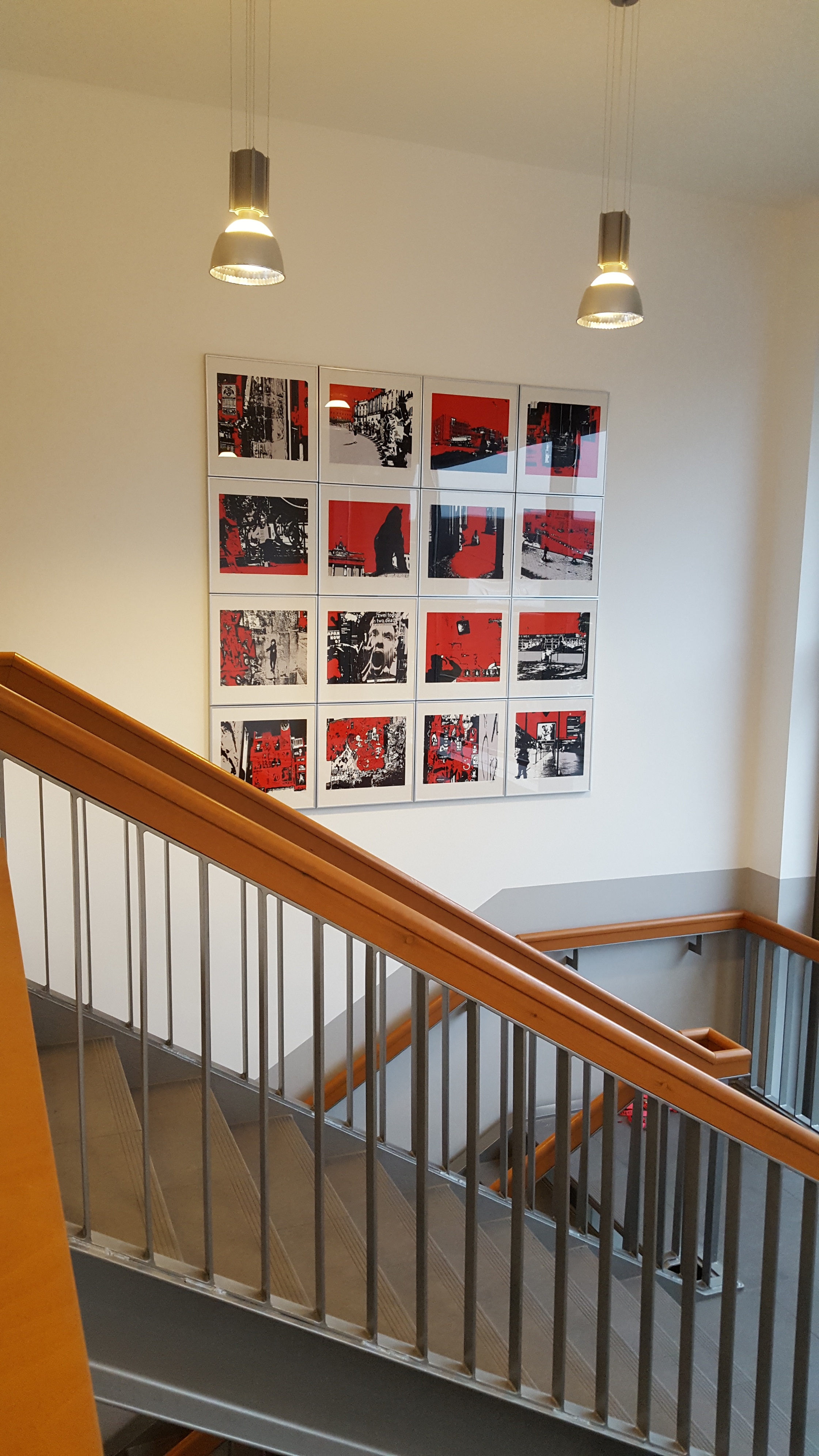 Die foto-grafischen Werke Dittloffs mit dem Namen "Metamorphosen" bestehen aus zwei Serien (1-5 & 1-16) und hängen seit Oktober 2017 im 1. Obergeschoss des International Office der HAW Kiel. Die hängenden Werke auf dem Campus sind jedoch nur ein Teil einer gigantisch großen Serie*: Der Künstler wählte aus 2000 Aufnahmen etwa 87 Fotografien aus, die er weiter digital bearbeitete. Daraus enstanden zwei Serien aus je 87 Grafiken: Die erste Serie wurde im Großformat (140x100 cm) gezeigt; die zweite Serie im etwas kleieren Format 50x50 cm. Aus letziger entstand das 16-teilige Polyptychon, welches nun in der HAW hängt. Die weiteren fünf Werke gelten als Ergänzung und sind Fragmente des Zyklus. Sie wurden erstmals im Rahmen der Ausstellung "Metropolis Berlin", 2009 in der Hauptstadt gezeigt.