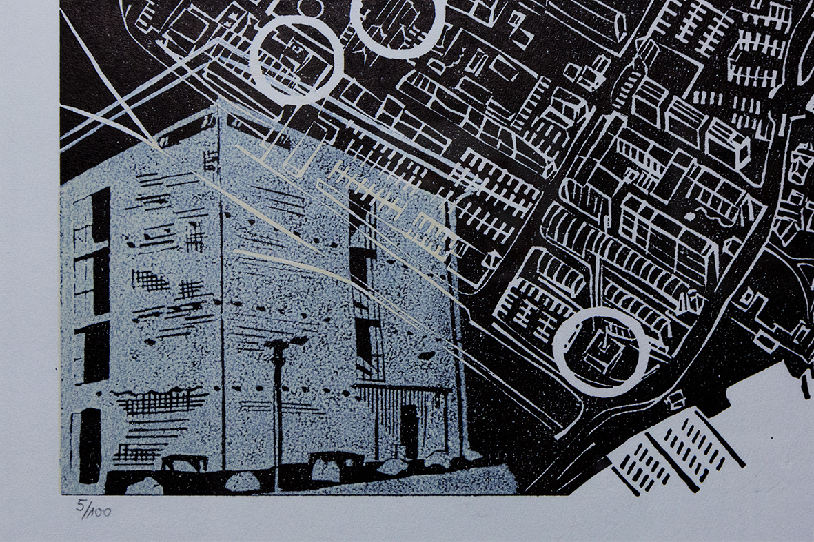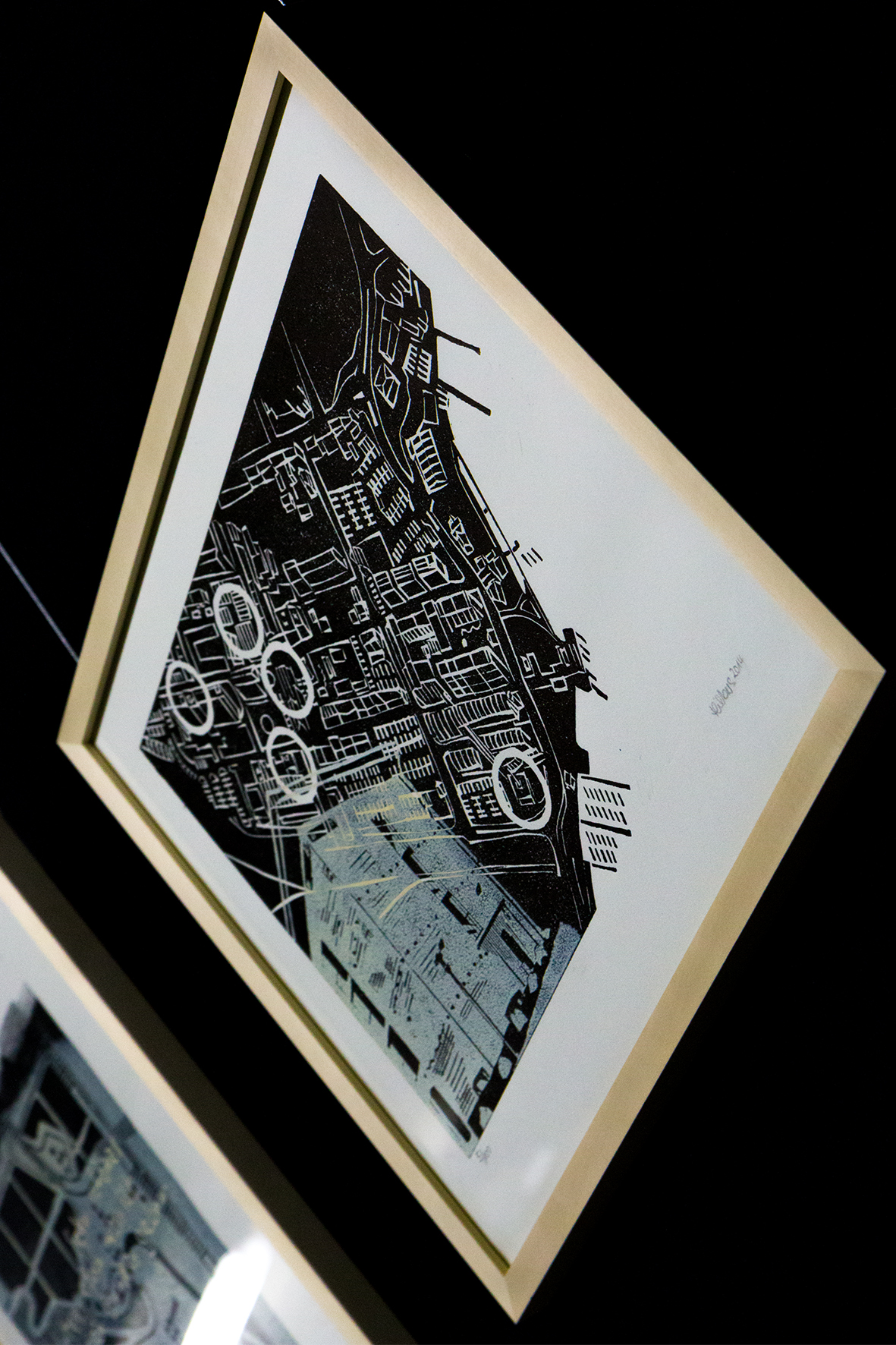 "Kulturinsel" ist ein Abzug von Karin Hilbers Linolschnitt "Kulturinsel Bunker-D", der im Foyer des Mediendoms hängt. Dieser Nachdruck von 2014 hängt dauerhaft im Bühnenraum des Bunker-D. Er zeigt den Grundrissplan des Fachhochschulgeländes an der Schwentinemündung. Im linken unteren Bildraum ist eine Seitenansicht des quadratischen Bunker-D abgebildet.