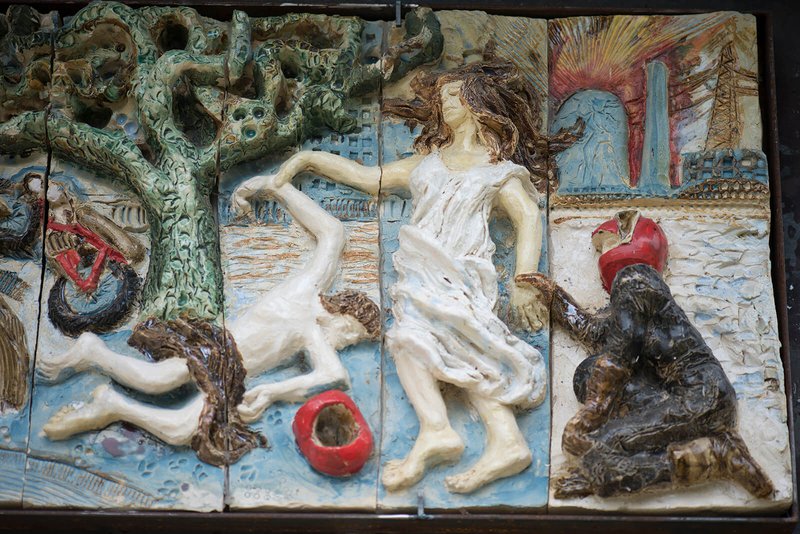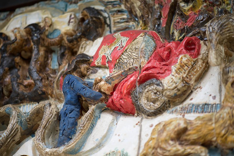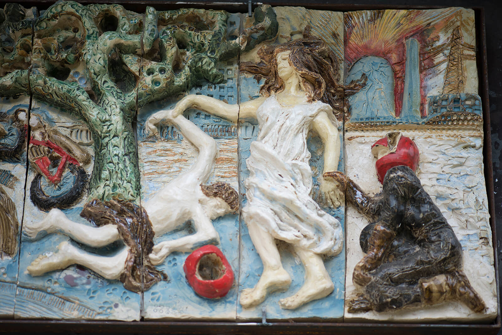 Das Fries nimmt eine Sonderstellung im Werk von Ben Siebenrock ein, weil es bewusst assoziativ ohne einen Gesamtplan entstand.