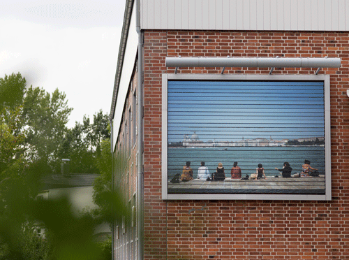 „Der Süden im Norden“ ist eine Prismavisionsanlage der Künstlerin Renate Anger, die im Rahmen des Kunstlaboratoriums 1994 ihren Weg auf den Campus fand. Sie vereint Fotografien der alten Kilian-Bunkerruine mit dem Blick auf Venedigs Hafen.