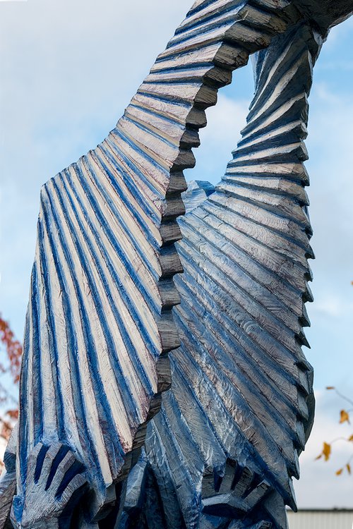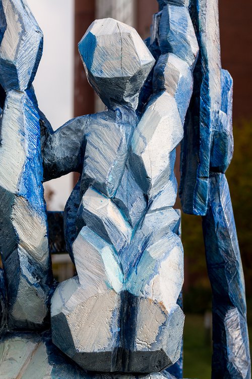 Rosa Treß Werk "Gate" steht wie ein Tor zum Skulpturengarten auf einer der Obstwiesen der HAW Kiel. Die blaue Skulptur ragt imposant weit in den Himmel. Sie zeigt mehrere Menschen, die sich durch ein Tor, das Gate, drängen und dabei von einem schwebenden Engel bewacht werden. Die Skulptur deutet hin auf die heutige Flüchtlingssituation, so die Künstlerin selbst. Sie beschreibt eine Szene bei der mehrere Menschen sich im übertragenen Sinne auf ein Boot drängen und durch das Tor in die neue, bessere Welt wollen. Kriegsflucht und Überlebenskampf versinnbildlicht. Der Künstlerin war dieser Ansatz nicht von Anfang an bewusst, trotzdem interpretiert und analysiert sie so ihr Werk. Unaufdringlich aber kubistisch öffnet "Gate" das Tor zum Skulpturengarten. Der Engel steht als esoterisches Element über dem Gesamtwerk.