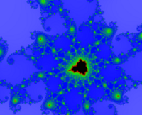 Aber man kann diese Formeln auch einfach nur darstellen und sich an den schönen Bildern erfreuen, wie zum Beispiel im Mediendom an der Show »Chaos & Order«. Die bekanntesten Darstellungen von Fraktalen sind die sogenannten Apfelmännchen von Benoît Mandelbrot. Nur durch die Entwicklung von Computern sind diese schönen neuen Welten zugänglich geworden.