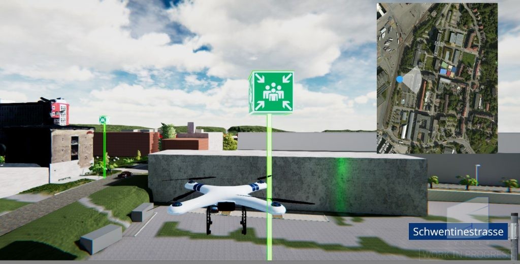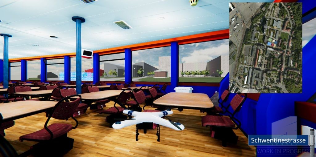 In dieser VR-Erfahrung fliegen die Spieler*innen mit einer Drohne über den interaktiven 3D-modellierten Campus der HAW Kiel. Durch laservermessene Höhendaten, vom Landesvermessungsamt SH, wird ein topologisches 3D-Höhenmodell der Landschaft um die HAW integriert.