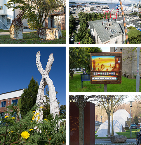 On the campus of the University of Applied Sciences Kiel several extensive projects have been undertaken in recent years. Some of them are very large works of art which have been installed in public spaces.
