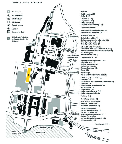 Unsere Schülerlabor Kurse finden voraussichtlich im Gebäude 6 statt, auf dem Campusplan gelb gekennzeichnet.