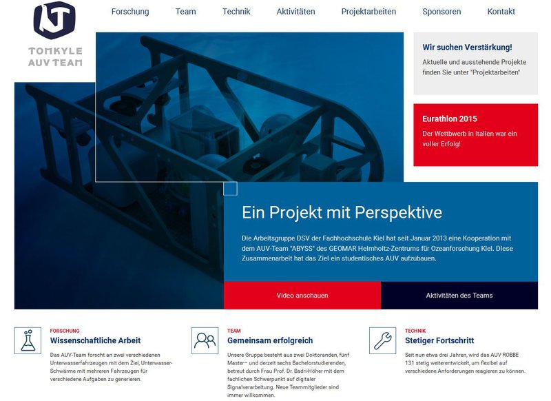 Das AUV Team TomKyle ist nun mit einer eigenen Seite vertreten, auf denen aktuelle Projekte, Beschreibungen und das Team ausführlich vorgestellt werden.
