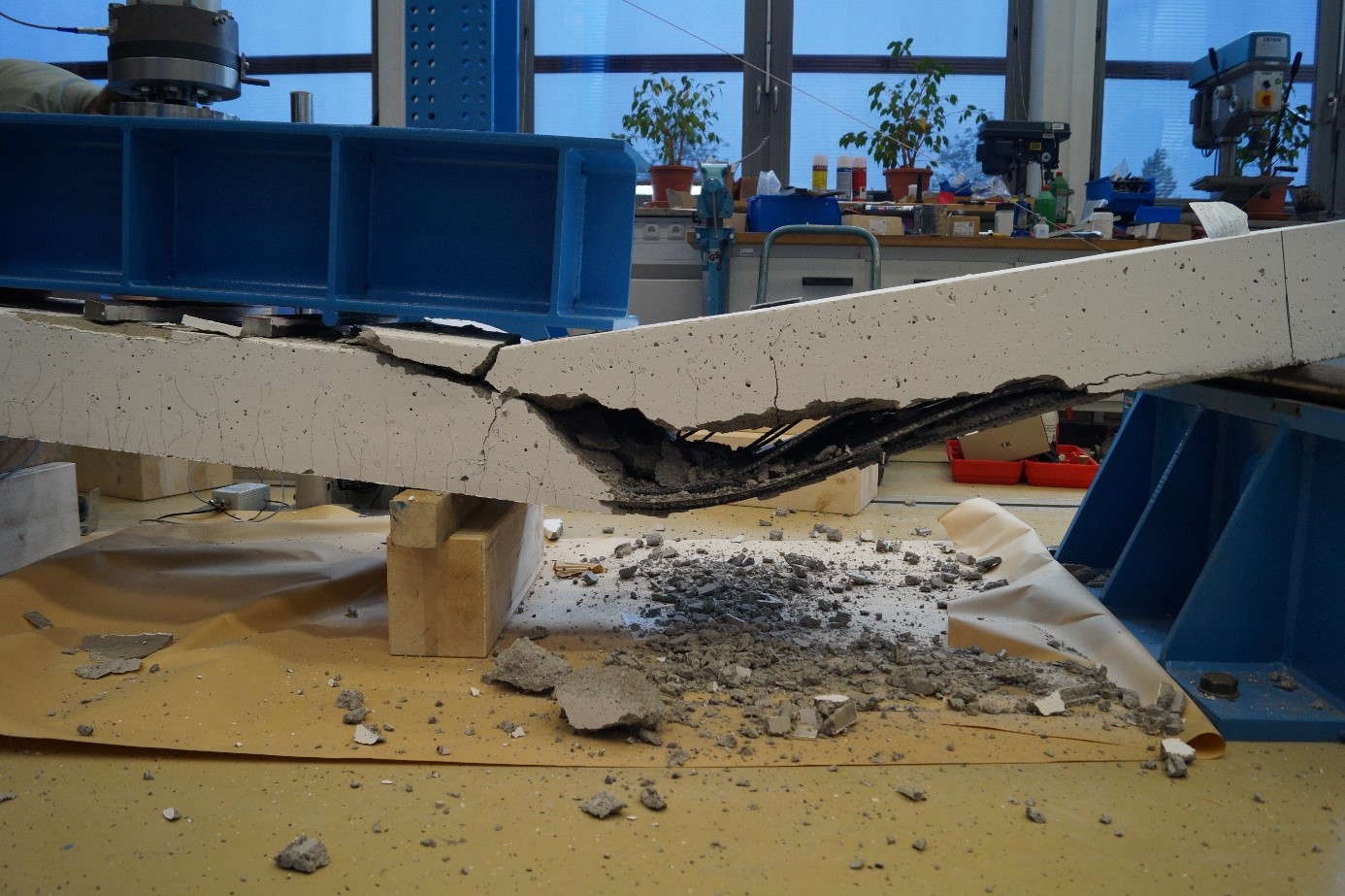 Am Institut für Bauwesen der FH Kiel wird zum Einsatz von Basaltstäben zur Bewehrung von Betonbauteilen geforscht. Basalt bietet im Vergleich zur konventionellen Stahlbewehrung insb. im Korrosionsverhalten erhebliche Vorteile. Basaltfasern werden gewonnen, indem Basaltgestein bei Temperaturen von über 1.300° geschmolzen und dann zu feinen Fäden bzw. Rovings gesponnen, die mit einer Harzmatrix verklebt werden. Durch entsprechende Profilierung der Harzmatrix wird bei der Applikation in den Beton eine gute Verbundwirkung zum Beton erzielt. Die Tragfähigkeit einzelner Basalt-Bewehrungsstäbe ist hinreichend bekannt. In Vorversuchen ging es nun darum, 4 Versuchsträger mit einer Länge von bis zu 4,0 m aus Beton mit Basaltbewehrung in 4-Punktbiegeversuchen bis zum Bruch der Träger zu führen. Dabei wurden die Dehnungen der Betonoberfläche gemessen sowie Weg- und Dehnungsmessungen der Bewehrungen durchgeführt. Im Verlauf der weiteren Forschung soll die Wechselwirkung zwischen den Bewehrungsstäben und dem Beton bei Belastung bestimmt werden. Bei langfristig positiven Erfolgsaussichten zum Einsatz von Basalt sollen sodann angepasste Bemessungsansätze erarbeitet werden. Für Details steht Prof. Dr.-Ing. Görtz(Kontakt) gerne zur Verfügung.