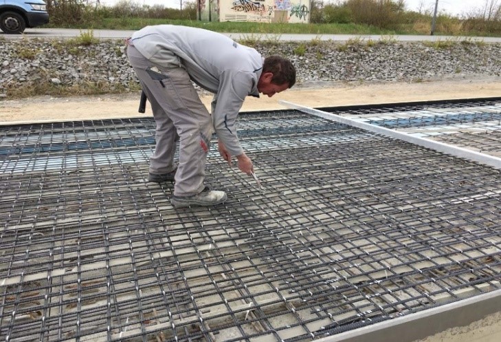 Darüber hinaus soll auch der Kappenbeton vollständig (100%) aus recyceltem Zuschlag erstellt werden. Neben dem Ersatz des Zuschlages wird versucht, das Recyclingmehl durch mechanische und thermische Aktivierung entsprechend aufzubereiten, so dass dieses puzzolanisch reagiert und dadurch ein gewisser Anteil an Zement substituiert werden kann. Somit kann einerseits die Ressource Zuschlag eingespart werden, durch die Reduzierung des Zementgehaltes verringert sich darüber hinaus der CO2-Bedarf.