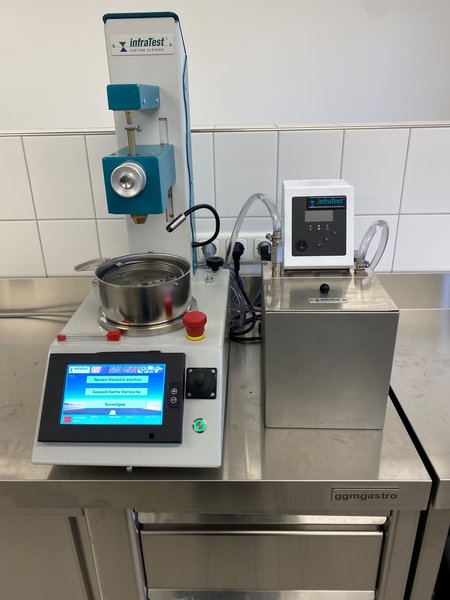 Mit diesem Prüfverfahren nach DIN EN 1426 wird gemessen, wie weit eine genormte Nadel bei 25°C innerhalb von 5 s in das Bitumen eindringt. Der Messwert wird dabei in 1/10 mm angegeben. Die Nadelpenetration kennzeichnet die Härte des Bitumens. Unser Labor verfügt über ein hochmodernes Nadelpenetrometer, das sowohl eine vollautomatische als auch eine manuelle Auswertung erlaubt. Gerade die manuelle Auswertung ermöglicht Studierenden im Rahmen der Lehre eine anschauliche Demonstration des Versuches.